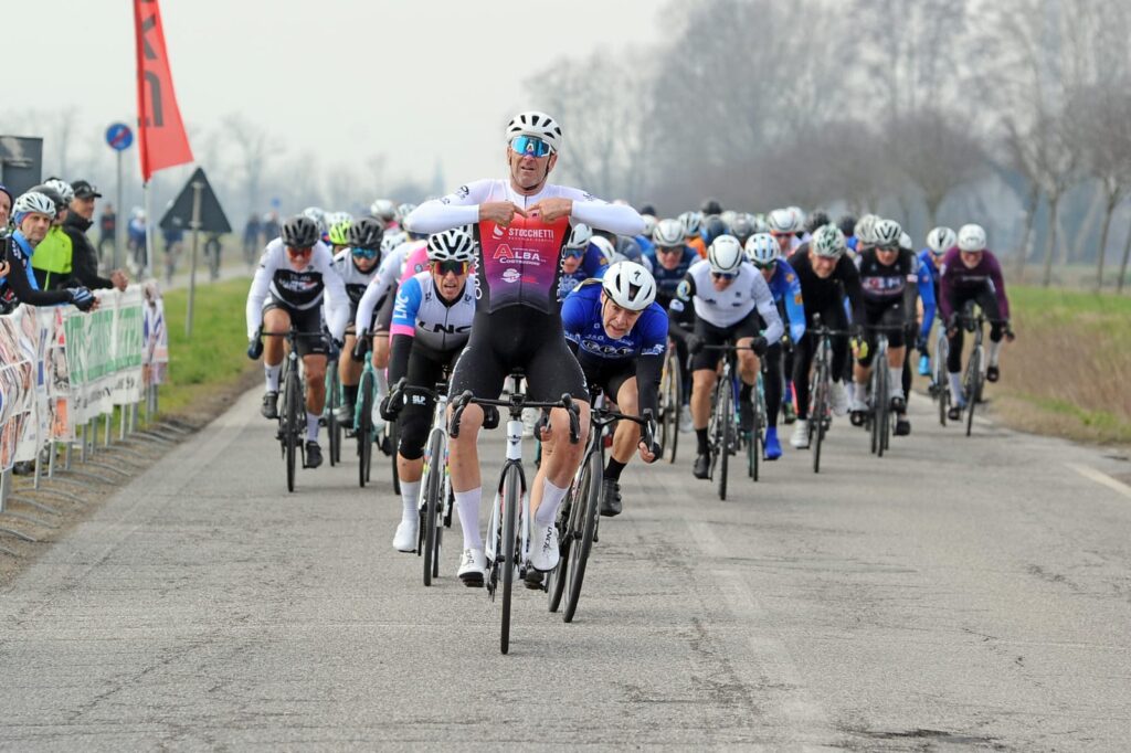Il 2026 corsaiolo comincia per i nostri in terra lodigiana con questa organizzata dalla ASD Sant’Angelo che vede i partecipanti di giornata raggruppati in due partenze, la prima riservata a GENB, SGA, SGB, SGC e Donne sul circuito di 12 km da ripetere 7 volte ( 136 partenti ) dove sono presenti i nostri Fausto e Roberto, nella seconda partenza per le restanti categorie i giri diventano 9 per un totale di 108 km ( 174 partenti ). Nella gara di 84 km dove sono presenti i nostri i primi due giri sono caratterizzati da ristretta fuga che prende margine dal gruppo, fuga che però viene riassorbita grazie al lavoro delle squadre che puntano alla vittoria, la gara condotta sempre a ritmi belli alti, quasi 42 km/h la media, non darà piu’ scampo a nessun tentativo di evadere quindi il finale vedrà una pericolosissima volatona a ranghi compatti dove la spunta su tutti Agostini/TeamStocchetti (GenB) su Codenotti/VeloClubPontenure (SGA) e Moreni/TeamLNC (GenB), il nostro Fausto sfiora il podio con il 4° posto nei SGB, mentre Roberto la chiude in 43^ posizione nei SGA. Bene il ghiaccio è rotto e ora via alle danze !