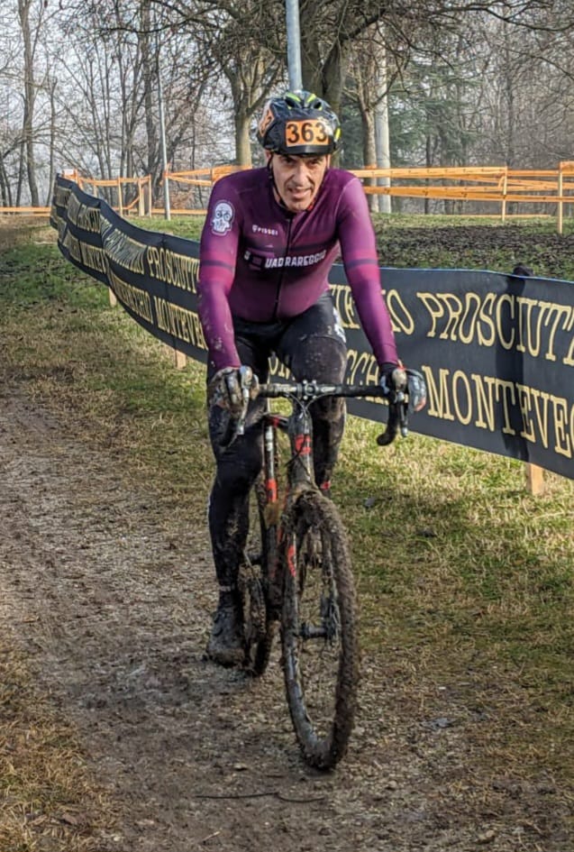 Mentre in Belgio si corre la classica di Coppa del Mondo di Namur qui a a Castelletto si è corso quella che per noi si puo’ considerare a tutti gli effetti la piu’ dura del Trofeo, niente da invidiare alla prova belga. Le temperature vicine allo zero e le piogge cadute nottetempo tra venerdì e sabato hanno fatto si che le condizioni del campo gara fossero in tutto e per tutto una gara da inferno del nord. I ragazzi del “ValsaBike Team” si sono impegnati nel disegnare un percorso a loro detta “croccante” e lo è stato davvero al punto giusto. La zona di partenza era l’unica scorrevole a parte qualche curva viscida , il resto era un pantano in alcuni punti liquido ed in altri bello colloso, le salite erano da fare tutte bici in spalla ma anche la discesa a tornanti sul pratone … non si stava in piedi, per non parlare della zona bassa che costeggiava il laghetto dove mancavano solo le papere a sguazzare nelle buche d’acqua, niente da dire … tutto in stile VERO CICLOCROSS. Oggi Marco doveva a tutti i costi vincere o al massimo arrivare secondo visto i pochi punti di vantaggio accumulati sul fortissimo Toni Mimmo, arrivare primo sarebbe stato un miracolo visto la forma dimostrata nelle ultime gare dallo Iaccobike ma a parte un salto di catena e due soste per togliere il fango tra corona e telaio il secondo è arrivato anche con largo margine sul terzo, l’amico Giorgio Goldoni/Team Virginia. Quindi oggi conti alla mano il 2° di M8 decreta nella Generale Giaroli Vincitore del Trofeo 2024 con 337 punti, due soli in piu’ dei 335 di Toni ed in terza piazza Goldoni a 237, Toni si consola vincendo il Regionale Uisp che qui si disputava in gara unica. Altra storia e battesimo del nuovo mezzo per Luca Fontanesi, la CUBE bianca come la neve arrivata in settimana sarà messa alla dura prova come il suo proprietario che oggi dopo la prima esperienza di San Cesario assaggerà qui nell’inferno di Serravalle cosa vuol dire ciclocross, ma Luchino se ne è innamorato già alla prima e anche se con gomme non adattissime si dà il suo bel da fare … abbiamo già visto di che tempra è fatto, è uno di quelli che non mollano e ha risposto subito … io ci sono … e qui con un bel 6° di M3 passa a pieni voti il test di ammissione ai CICLOCROSSISTI FOREVER.