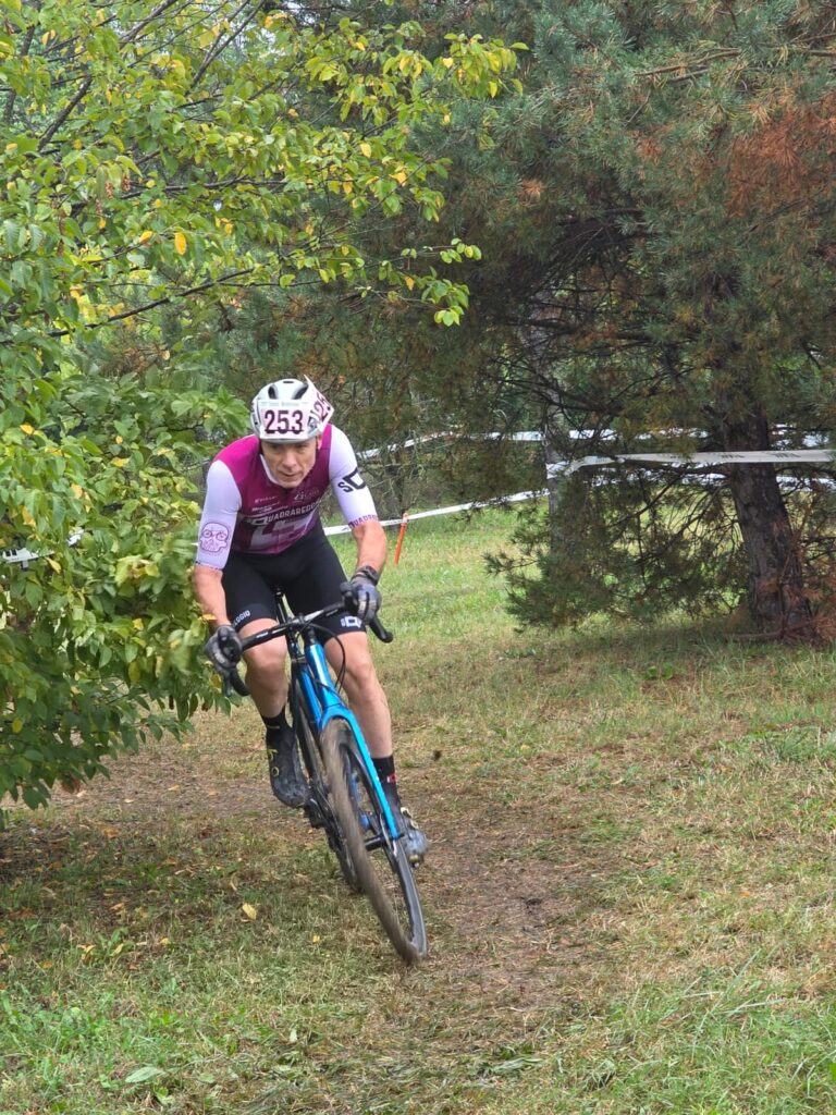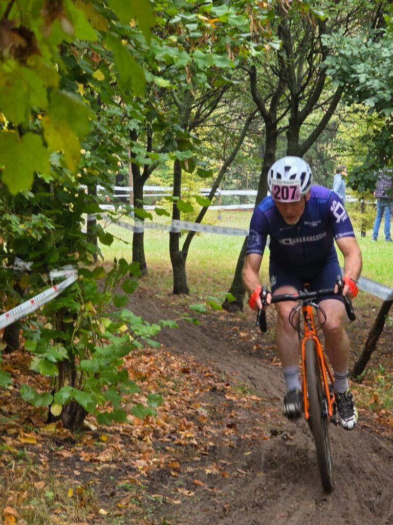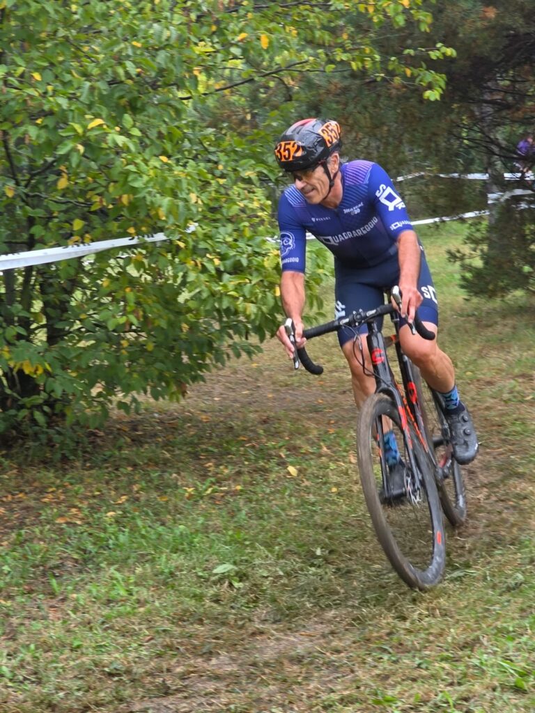 E’ finalmente arrivata la stagione dei brutti sporchi e cattivi amanti di polvere, fango, erba e fossi quindi non poteva mancare l’elemento principe, la pioggia che caduta nottetempo ha contribuito ad allentare il terreno di gara e a renderlo assolutamente in linea con i crismi principi del Ciclocross. La prima di stagione qui al Parco dei Popoli solitamente organizzata da IaccoBike ha visto un passaggio di mano e alla presa in carico dello SpillaTeam e a due gran tracciatori ed esperti della disciplina, Remo Bardelli e Davide Montanari, i due hanno rivoluzionato il percorso di gara rendendolo forse piu’ appetibile visto l’eliminazione delle due salite da lingua fuori ma lasciandolo sempre bello duro con salitelle e discese in contropendenza che rese viscide e fangose dalla pioggia hanno messo alla prova la resistenza dei partecipanti. Il copione delle partenze rimane il solito e collaudato, prima gara ore 9.00 per la MTB e seconda gara alle 10.00 riservata al CicloCross, i nostri quattro alfieri comandati da “capitan Giaroli” con Carnevali, Cavazzoni e Fontanesi son tutti impegnati nel CX e venderanno cara la pelle. Partenze di categoria come sempre scaglionate di 15″/20″ una dall’altra, primi a partire M7/M8 poi a seguire M5/M6, M4/M3 e ultimi Elite/M1/M2. Marco nella prima partenza si ritrova l’ annoso avversario di sempre e praticamente imbattibile Toni Minno/Iaccobike , riesce a stargli quasi attaccato solo il primo dei sei giri in programma poi deve mollare l’osso e tirare i remi in barca difendendo una comunque onorevole 2° piazza di M8 . Rossano nella sua dimostra di avere gran gamba ma purtroppo si trova a combattere con calibri di portata maggiore rispetto alla sua , Nicoletti Stefano/BeltramiTSA vincitore dell’assoluta, Corti Massimo stesso team e Portioli Gianluca/NewBike non sono alla portata ma puo’ sicuramente sbattagliarla nelle prossime con Coltro e Rossi sicuramente piu’ abbordabili, il 6° di giornata in questa durissima M6 è comunque da elogio. Nella M5 Roberto se la deve vedere con un’altro bel lotto di avversari per niente avvicinabili guidati dagli Spilla Bardelli e Montanari e da un bel portacolori Beltrami Andrea Bianchi, onorevole comunque il suo 9° di giornata che contribuisce a portate punti anche alla classifica di società, bravo Roberto. Chiudiamo con la M3 dove Luca ha anche lui il suo bel da fare con un vera banda di assatanati specialisti con in testa Gozzi/IaccoBike, Guerzoni/La BottegaCasinalbo e Balberini/BiciXtutti, 9^ piazza anche per lui ma sicuramente lo vedremo scalare posizioni alle prossime e ci permettiamo un consiglio tecnico … eviterei le mani basse sul manubrio che possono andar bene in Gravel o Strada ma per la guida nel CX assolutamente meglio mani alte. Ragazzi complimenti a tutti, un’ora di gara lì dentro è stata veramente dura ma vedrette che gara dopo gara l’anno prossimo troverete i benefici che questi fuori giri avranno apportato al vostro stato di forma … tutti watt in cascina. Per la cronaca ecco i vincitori di giornata nelle varie categorie: El/M1 Ghiddi Alberto/TeamTodesco, M2 Severi Andrea/BHS Team, M3 Gozzi Stefano/IaccoBike, M4 Strullato Paolo/CheroGroup, M5 Bardelli Remo/SpillaTeam, M6 Nicoletti Stefano/BeltramiTsa, M7 Tomesani Alberto/ValsaBikeTeam, M8 Toni Mimmo/Iaccobike, Woman Ballestri Giulia/BeltramiTsa. Si attendono altre adesioni per la prossima del 19 così da rinfoltire le fila Squadrareggio e portare punti buoni di squadra, l’invito è esteso non solo ai ciclocrossisti ma anche ai biker, vi aspettiamo sugli argini e le pioppare dell’ Enza in quel di Mezzani/Coenzo daiiiiiiiiiiii ! Cogliamo l’occasione per un grosso in bocca al lupo ai nostri Fusto e Magno impegnati domenica prossima in Olanda al Mondiale Gravel.