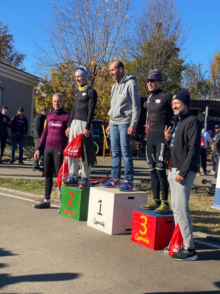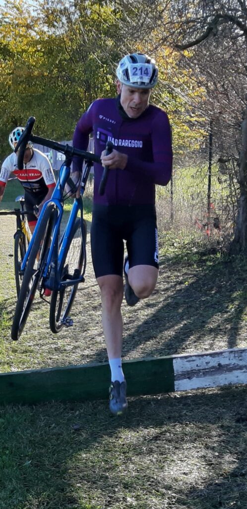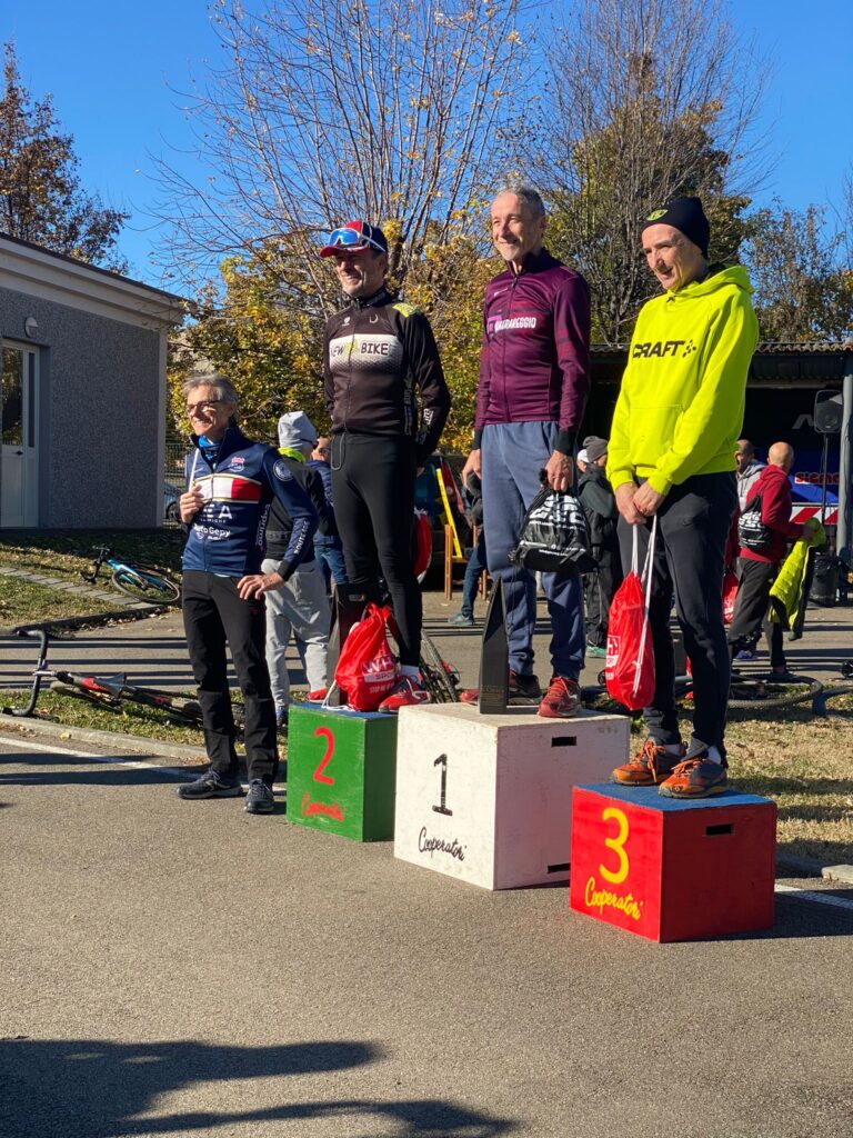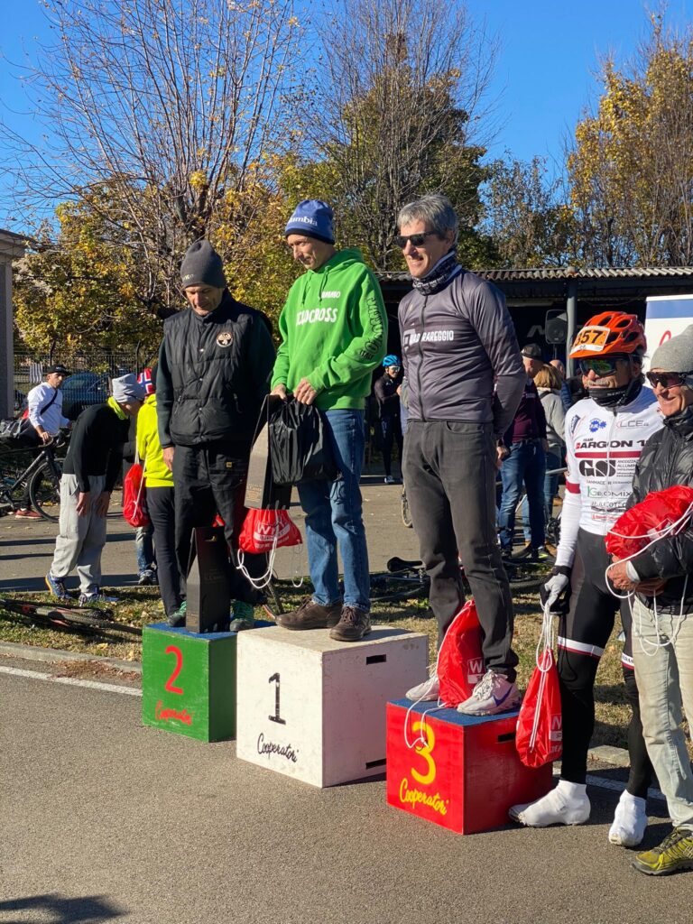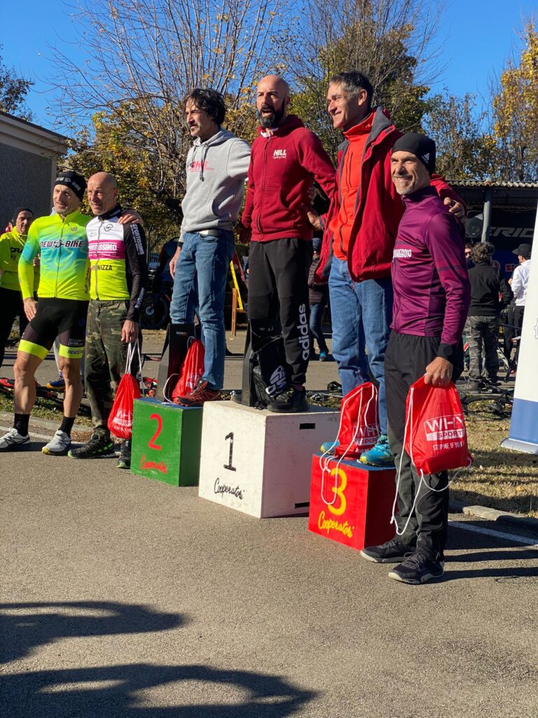 Oggi al Campovolo i magnifici sette non potevano mancare, questa volta però con formazione rimaneggiata … un sei piu’ uno, Carnevali-Fornaciari- Giaroli-Peterlini- Riva- Zecchini nel Ciclocross e “Carletto” Buzzelli new entry in MTB alla sua prima assoluta al Trofeo, ma abbiamo anche avuto il piacere della presenza a bordo pista del Presidente Marco Paparella e compagna piu’ diversi Squadrareggio in versione “curva del tifo” a sostenere i compagni in gara… mancavano solo le trombe. Bello e filante il tracciato disegnato dall’ormai esperto ma soprattutto amico Livio Redeghieri ben supportato dai ragazzi Cooperatori, che oltre alle classiche gobbe, la scalinata, il tratto in sabbia, le assi e un’ostico strappetto la gara non presentava particolari difficoltà ed il terreno quasi tutto su erba permetteva curve da orecchie per terra. La prima partenza delle 9.00 dedicata alla Mtb come già detto ha visto un grande Carletto ben destreggiarsi nel percorso di gara dove si è permesso pure di scambiare due chiacchiere con un compagno di avventura e chiuderla con un discreto 9° posto in categoria M6, grande Carlo … c’e’ del futuro. Alle 10.00 il via del Ciclocross dove questa volta, visto la lunghezza del percorso ( 3,1 km ), si è rivista la classica partenza con in primis la categoria Elmt/M1 ed a seguire le altre con la M7/M8 a chiudere, il migliore dei nostri con la 26^ piazza assoluta è come da copione Vittorio “Vitto” Riva, ma sappiamo quanto alto sia il livello della sua M3 dove oggi ha visto primeggiare Alessio Copercini/UispPR ma anche se distante dal podio l’8° posto di Vitto merita un’applauso ; in 34^ troviamo Stefano “Veleno” Peterlini che riagguanta la zona premio chiudendola al 5° posto nella M6 vinta da Massimo Corti/HillCycling, il “gambone” suona sempre come un quattro tempi da enduro; poi in rapida successione con la 38^, 40^ e 41^ piazza troviamo Fausto “Fusto” Fornaciari, Rossano “Ross” Carnevali e Marco “capitan” Giaroli, Fausto con questa 1^ piazza in M7 conquista la 3^ vittoria nel Trofeo, Rossano reduce da una settimana di crauti e wurstel digeriti a fiumi di birra in Germania per lavoro, dimostra che la dieta teutonica ben si addice al Ciclocross e firma un’ottimo 4° posto in M5 vinta da Remo Bardelli/SpillaTeam, buono anche il 3° gradino del podio in M8 di Marco dove contro la coppia Toni/IaccoBike (vincitore di giornata) – Mongardi/Spilla Team non c’è speranza ; buona anche se la gamba è ancora indietro visto la frequente mancanza alle gare la 49^ piazza di Marzio “Zecco” Zecchini che coglie un bel 8° in M6. Visto che qui i partenti erano un’ottantina è da considerarsi buona la prova corale SQR dove tenuto conto del fatto che le partenze sono a seguire a 20 secondi una categoria dall’altra trovarli quasi tutti nei primi 40 è un’ottimo risultato. I vincenti di giornata nelle altre categorie sono stati: ElMt/M1 Filippo Bigi/NMB; M2 Marco Balberini/BiciXtutti; M4 Paolo Strullato/CheroGroup; Woman Sara Griffi/Capodarco. Attenzione i punti di gara dalla prossima in quel di San Cesario (Mo) sono maggiorati, quindi cerchiamo di sfruttarli a vantaggio per scalare posti in classifica e sempre Forza SQR