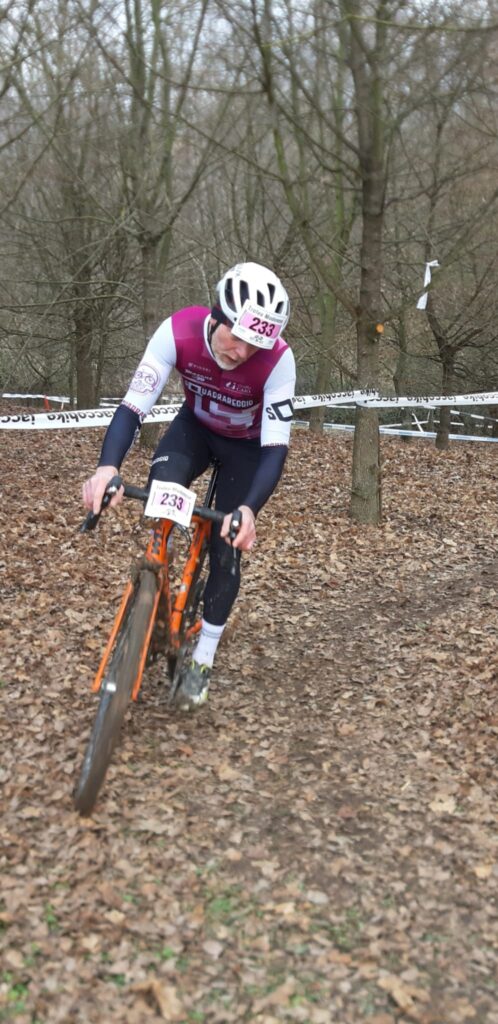 Sul duro percorso che vedrà il giorno dopo la sfida alla conquista della maglia tricolore per il Campionato Nazionale di Ciclocross riservato ai tesserati Uisp ci presentiamo in due ad inaugurare l’anno corsaiolo di Squadrareggio, Roberto Cavazzoni nella categoria M5 e “capitan Giaroli” negli M8. Spettacolare e sempre molto duro il percorso ben allestito dagli IaccoBike al Parco dei Popoli di Castellarano con un terreno a due facce, in alcuni punti bello scorrevole ed in altri bagnato e viscido al punto di non stare in piedi, le temperature in rialzo hanno aiutato a rendere poi il terreno argilloso ad una colla a cui si sono aggiunte le foglie a cementare il tutto… fortunati i possessori di doppia bici, ce n’era davvero bisogno. Marco si scrolla di dosso gli avversari già al primo giro e nonostante due fermate per togliere il “cemento” da movimento centrale e passaruota, una caduta e due salti di catena vince senza problemi la sua categoria M8, doppiando addirittura tre dei suoi . Bene anche Roberto che inizia con un buon 6° in M5, purtroppo subisce l’onta del doppiaggio da uno stratosferico Stefano Nicoletti/BeltramiTsa che grazie anche al cambio bici ogni giro sembra volare su questi terreni assoluto dominatore di questa gara davanti a personaggi del calibro di Bardelli, Strullato ecc.ecc. . La gara per il Nazionale Uisp del giorno dopo, domenica 19, visto le previsioni che mettono pioggia notturna sarà ancor dura e combattuta a suon di cambio bici, chi si presenterà con una bici sola perderà in partenza lasciando in partenza i sogni di gloria.