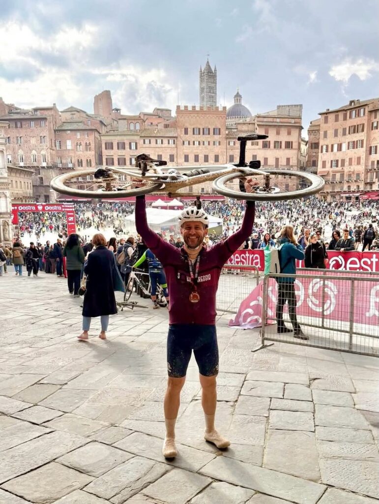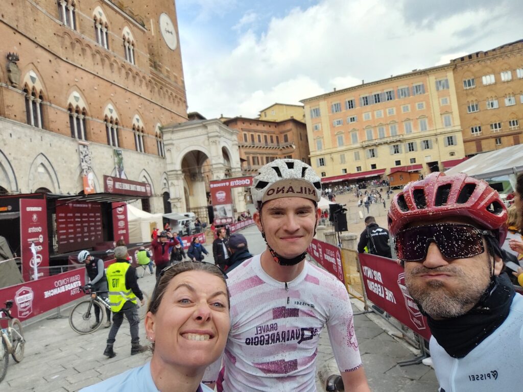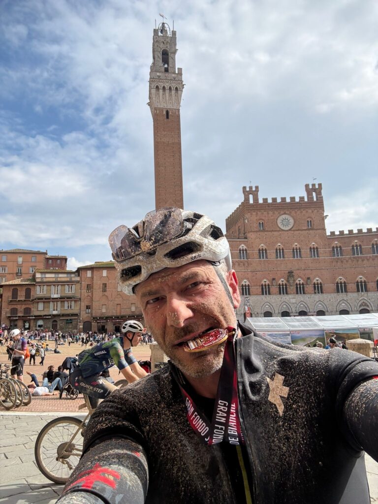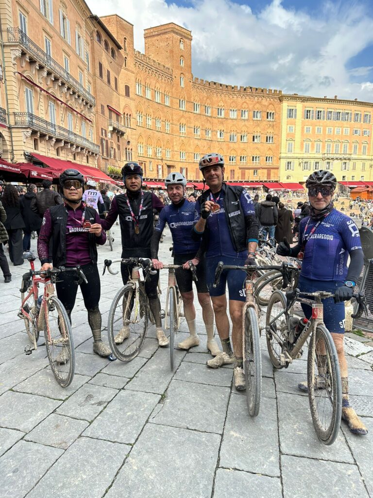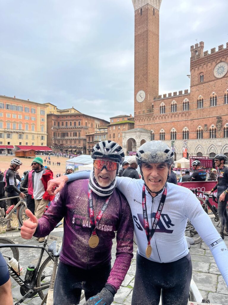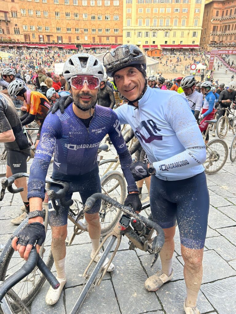 Siena – Ci sono gare e gare ma questa è tutta un’altra storia e non puo’ che rimanere nei cuori di chi vi partecipa. Come cita il sottotitolo della manifestazione “Ride into the Legend” è davvero così e non per niente per i professionisti è conosciuta come la classica del Nord piu’ a Sud d’Europa e noi non siamo stati da meno, certo i chilometraggi per noi non erano di pari livello a loro ma fatica, sudore e fango lo son stati di piu’. La nostra storia comincia il sabato con una sgambatina per vedere i passaggi dei professionisti sui punti che han fatto la storia di questa gara, poi chiusura di giornata quasi a gruppo compatto al Bar/Trattoria dell’Orso di Monteriggioni per cena rigenerante a base di Pici, Fiorentine, Chianti e Cantucci con VinSanto, quello che ci vuole da veri professionisti per affrontare la gara del giorno dopo. Già … il giorno dopo … al risveglio (per chi è riuscito a dormire) ecco la novità, è piovuto tutta notte e per chi si presenta in griglia per il Medio alle 7.30 pioviggina ancora, pensiamo positivo non mangeremo polvere come i professionisti ma assaggeremo fanghiglia … molto meglio ! Sparuta pattuglia SQR sul Medio di 88 km x 1500 di dislivello con i suoi 6 settori di sterrato ( Vidiritta 2.1 km, Bagnaia 5,8 km con punte al 15%, Radi 8 km punte al 14%, Presciano 2,2 km e poco piu’ del 12%, Colle Pinzuto 2,4 km e punti al 15%, e il tremendo Le Tolfe corto poco piu’ di 1 km ma con il 18% ) e chiusura canonica a Piazza Del Campo non prima di aver affrontato dopo il passaggio da Porta di Fortebranda quel bell’osso di Santa Caterina con il suo bel 16%. Ecco i risultati del Medio (1913 classificati) dove a vincere l’assoluta è un certo Barbero Piantino Massimiliano/OM.CC in 2h17m52sec ed ecco i nostri : “capitan Giaroli” sotto crampi viene raggiunto sulle Tolfe da Baschieri e la chiudono al 331° assoluto Daniele (30° M6) e Marco al 343° in 3.00.38 (5° M8) poi arrivo in coppia al 1176° e 1177° in 3.57.43 di Stefano Spagni (101° M7) e Roberto Immovilli (144° M5). Il resto della banda … e qui siamo in tanti 15 SQR sul Lungo (4.263 classificati) con partenza alle 9.00 non subirà l’assillo della pioggerellina ma dovra farsi 50 km in piu’ (138 totali e 2150 D+) e 5 settori di sterrato in piu’ ( Piana 6 km, Serravalle 9,3 km, San Martino in Grania con i suoi 9,5 km e con pendenze che diventano interessanti 12%, poi due strappetti di circa 1 km Guistrogna e Monteaperti entrambi con punte al 13% ). Qui la vince Nardin Alberto /MGK-VIS in 3h46min14sec con una media da professionista … un missile, il migliore dei nostri in 364^ posizione è il neo Marco Baccosi con un tempone di 4.29.42 a cui vanno i nostri complimenti che vogliamo ribarirgli al prossimo ritrovo di gruppo, poi in 1371^ in 5.09.42 ecco Simone Incerti (138° ELMT), la fanno in coppia Luca Fontanesi 1457° vittima di rottura di tacchetta (225° M4) e Stefano Peterlini 1459° (134° M6) in 5.12.36, poi abbiamo quasi una terna con Paolo Parmiggiani 1643° in 5.1827 (161° M6) e al 1663° e 1665° in 5.18.51 Arvin Banela (262° M2) e Sergio Campanale (255° M3), in 5.33.50, al 2101° troviamo Mattia Salardi ( 308° M2), arrivo in coppia anche per Rodel Pagsinhoin 2321° (347° M3) e Juri Ariosi 2323° (264° M6) ed eccoci agli ultimi cinque ma primi per abnegazione e spirito di gruppo con il febbricitante Andrea Foletti (429° M6) al 3222° accompagnato da Filippo Codeluppi 3223° (214° ELMT) in 6.15.17, poco dopo ma l’aveva fatta tutta con loro per poi pagare qualcosina sul finale 3493^ una grandissima Carlotta Giovanardi in 6.24.13 (50^ WC), 5 minuti dopo in 6.29.07 al 3493° Carlo Buzzelli (466° M6) lui asserisce di aver avuto una visione sulle Tolfe … ha addirittura conversato con La Madonna poi infine ha ricevuto il battesimo da Giove Pluvio all’arrivo in Piazza del Campo, ultimo ma non ultimo, bravissimo il mio pari età Mauro Siligardi al 4129 in 7.22.31 (88° M8). Ragazzi che dire … vi basta un vi voglio bene ? un weekend così continueremo a raccontarcelo e rimarrà negli annali di Squadrareggio… devastati ma soddisfatti !