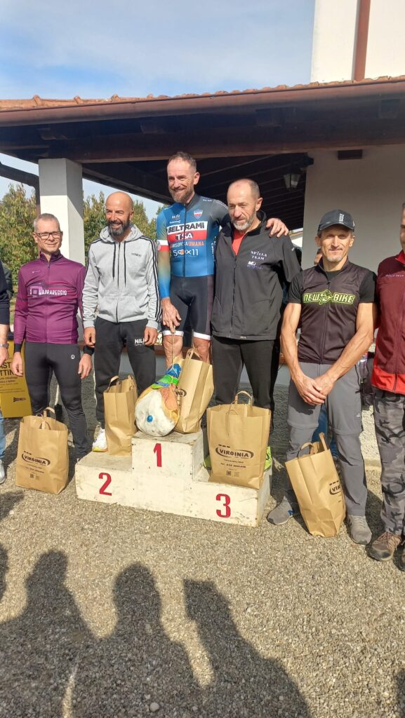 E’ sempre una festa qui dai Montanari in questa gara storica giunta alla sua trentaduesima edizione, solitamente da sempre calendarizzata l’ 8 dicembre quest’anno è stata anticipata a fine ottobre ed è stato anche rivoluzionato il percorso visto che il pratone antistante l’Azienda era completamente arato di fresco, quindi il 90% del tracciato si è sviluppato tra i veloci filari del frutteto di famiglia. Visto il periodo non abbiamo trovato il fangone degli ultimi anni ma una splendida e calda giornata di sole ha accolto i partecipanti su questo percorso inaspettatamente veloce e divertente, pensate che qui un anno si disputò un ciclocross con una spanna di neve sul tracciato. Il divertente era per dire perchè c’era da spingere rapporti veramente duri, rilanci e continue ripartenze hanno messo a dura prova le gambe di tutti, sicuramente non quelle di Nicoletti che qui ha staccato a suon di watt il miglior tempo portando a casa il prosciutto riservato al vincitore assoluto della gara. Il migliore dei nostri oggi è stato Rossano Carnevali, il “Ross” con il 4° nella M6 ha mostrato gran gamba che oltre le ottime doti di guida gli ha fruttato il 20° assoluto che su quasi 100 partecipanti è tanta roba. Il “capitano” purtroppo causa due salti di catena quando era assieme al gruppetto M7/M8 che si stava giocando la gara ha dovuto abdicare, rimasto attardato e non riuscendo piu’ a rientrare a Marco Giaroli è “scesa la catena” del tutto ma ha portato a casa la solita 2^ piazza di M8, riuscirà mai a mettere dietro il buon Toni ? Bene anche il resto della truppa dove su un percorso del genere l’imperativo era non farsi doppiare dal “Nico”, Roberto Cavazzoni dopo aver passato l’influenza riesce a pieno nell’impresa ed è 14° nella sua M5, altra storia invece per un Carlo Buzzelli che forse troppo vestito è si riuscito a non farsi doppiare ma ci aspettavamo qualcosa di meglio che il 10° in M6 visto che domenica scorsa aveva sfiorato la zona premio. Ecco i vincitori di categoria di giornata: El/M1 Ricco’/NewBike, M2 Castellini/IaccoBike, M3 Gozzi/IaccoBike, M4 Di Renzo/Sportissimo, M5 Montanari/SpillaTeam, M6 Nicoletti/BeltramiTSA, M7 Tomesani/ValsaBike, M8 Toni/Iaccobike, Donne Ballestri/BeltramiTSA. Domenica 2 novembre il Trofeo osserva un giornata di riposso, prossimo appuntamento la domenica dopo a Cavezzo il 9 novembre.