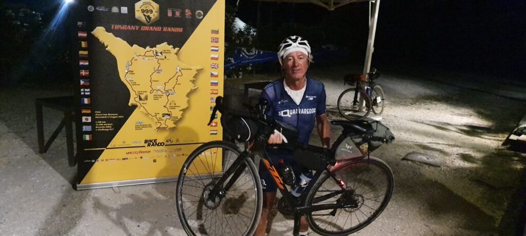 Dopo il controverso 2024 il nostro Maurizio Aguzzoli è tornato a fare quello che sulle due ruote gli riesce meglio e cioè “macinare chilometri su chilometri” ed eccolo presente e con poco allenamento nelle gambe a questa nuova sfida, la GranRando 999Tuscany con partenza dal Parco di San Rossore (PI) per un brevetto semplice semplice … 1.200 km e 15.400 D+ da portare a termine entro 95 ore e 12 minuti. … ce la farà ? Chi scommetteva di no poteva dire di aver perso la scommessa in partenza perchè Mauri la chiude udite udite in 78 ore 13 minuti … alla faccia dei pochi chilometri nelle gambe. Grandissimo Maurizio, la vecchia scorza e che scorza è tornato a dire la sua, altro che mission impossible, bravissimo gli anni passano ma la linfa è sempre quella di un ragazzino in tutto e per tutto. Grazie Campione da tutta SQR.