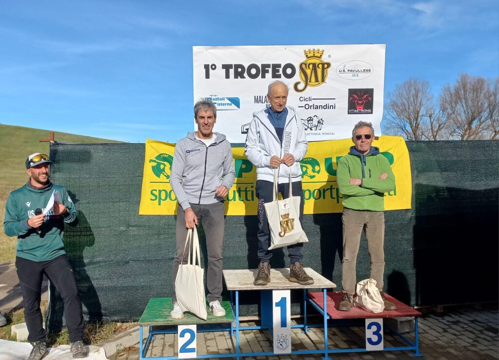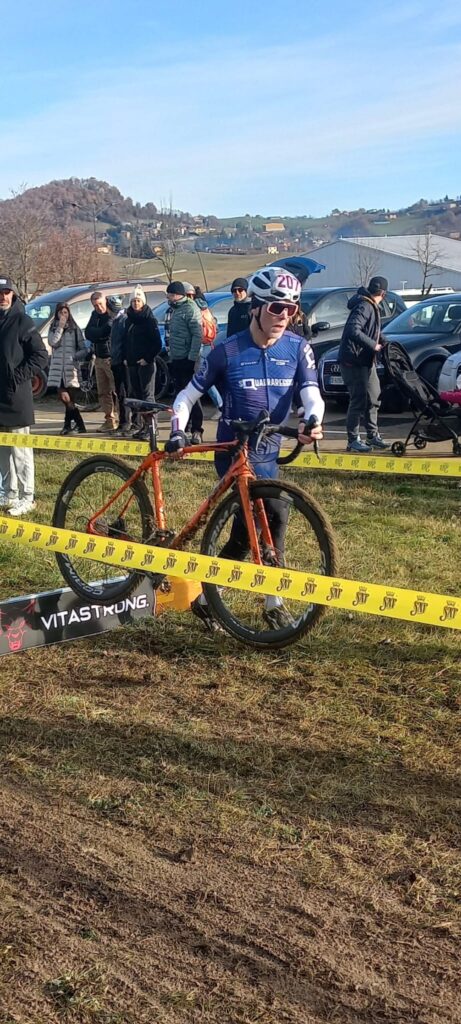 Tappa di montagna per la penultima e novità assoluta per il Trofeo 2025 e qui cominciavano le domande: ci sarà la neve ? sarà ghiacciato ? visto che il campo gara è all’interno dell’Areoporto Paolucci di Pavullo sarà un piattone ? poi sono arrivate notizie allarmanti del tipo: salitone al 7% spaccagambe e conseguente discesone da brivido ai 60/70 all’ora … mah … Squadrareggio, lo scopriremo arrivati sul posto. Partiamo presto da casa e scopriamo che non è poi così distante da Reggio in un’oretta di viaggio visto il traffico zero e siamo già in zona areoporto parcheggiati, ad una prima vista mi sembra di tornare ai tempi di quando correvo in moto, al colpo d’occhio mi si presenta un fettucciato sulla costa della montagna che domina il fianco dell’areoporto stile Nazionale di Enduro dei bei tempi passati. Visto le temperature sotto zero della notte erba e terra sono belli ghiacciati ma ci penseranno i bikers, prima gara a partire ad ammorbidire il tutto ed il sole darà il colpo finale. La partenza è in leggera discesa ma dopo poche decine di metri appena arrivati sul pari hanno posizionato le assi a spezzare la voglia per chi pensava di fare una partenza a razzo, poi viene il bello… una “salitella”, si fà per dire perchè tra una cosa e l’altra sono 500 mt, il primo pezzo in asfalto ci porta all’attraversamento di un borghetto di case poi di nuovo terra ed erba fino allo scollinamento con pendenze di tutto riguardo, ci sembra di essere alla tappa di Coppa del Mondo CX di Namur, segue una serie di discesine e salitelle per arrivare a buttarci a capofitto nel discesone da urlo (c’era davvero), il resto è tutto un su e giu’ in un fettucciato guidato dove chi fà sfoggio di tecniche di guida eccelse farà la differenza, soprattutto in curva, poi ci si aggiunge il fatto che la terra è del tipo colloso… cavoli amari se avessi ancora il WR 250 Yamaha due tempi mi divertirei a bomba! Oggi il migliore di tutta la banda SQR è proprio chi scrive, “capitan Giaroli” rispolvera le vecchie doti di guida e chiude la gara al 29° posto assoluto e 2° di M8 sempre dietro al solito Toni fresco vincitore dell’argento al Mondiale Master CX di Varese; segue in 35^ piazza e 6° di M6 un Rossano Carnevali oggi purtroppo leggermente sottotono per quanto aveva fatto vedere nelle ultime; benissimo invece in 37^ Roberto Cavazzoni e 6° di M5, gara dopo gara si trova sempre piu’ a suo agio nell’amato cross; bene anche Luca Fontanesi una posizione dietro a “Robby” in 38^ e 6° di M3, la gara di Sermide ha fatto bene e la condizione di “Luchino” è in aumento; chiude la pattuglia in 47^ e 8° di M6 la “nutria” Parmeggiani, Paolo ultimamente ha forse una gamba piu’ abituata alle valli di Novellara/Reggiolo che alle asperità appenniniche ma è da elogio per abnegazione e attaccamento alla squadra, grande.