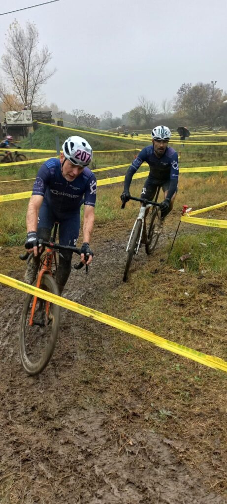 Lo avevamo chiamato ed è finalmente arrivato, oggi all’ ex cava di San Cesario le condizioni erano quelle di un vero ciclocross stile Nord , acqua a catinelle e fango a go go sono stati il corollario in questo splendido anfiteatro naturale magistralmente tracciato dai ragazzi dell’Avis organizzatori del 20° Memorial Eugenio Calidori. Qualcuno l’aveva tirata dicendo che le previsioni nel modenese non mettevano pioggia a metà mattina invece in barba al meteo appena prima della partenza si è scatenato Giove Pluvio ma qui viene il bello, siamo qui per il ciclocross o a pettinare le bambole ????? quando le condizioni diventano dure i duri cominciano a giocare e sei mastini in maglia Squadrareggio si presentano compatti ai nastri di partenza delle rispettive categorie. Oggi come già detto c’era di tutto, partenza su asfalto in salita da copione come se fossimo ad una gara del mondiale, discese viscide in contropendenza, scalinata da bici in spalla, ostacolo da saltare, strappi in salita con cinque dita di ploccio da fare in libera scelta … chi riusciva in sella altri a piedi ma il tempo impiegato era identico, poi a parte i tratti in prato su tutto il resto del percorso il fango l’ha fatta da padrone… divertimento assoluto ! Ma passiamo alle note di gara dei nostri sei: nella M8 “capitan Giaroli” approfitta dell’assenza di un influenzato Toni Mimmo e dopo quattro secondi qui al Trofeo c’entra la 1^ vittoria ; nella M6 un sempre piu’ pimpante “Ross” Carnevali fa bello sfoggio delle sue doti di guida e centra un’ altro bel 4° nella M6 sempre dietro ai soliti tre “ufo” ma la sua 17^ piazza assoluta la dice lunga su come stia andato … la gamba gira che è un piacere, nella stessa categoria c’erano le “due nutrie della bassa” a fasi alterne, un ottimo 8° Paolo Parmiggiani naviga a vista nel pantano ed invece mala sorte per Juri Ariosi, centrato da dietro è costretto al ritiro con forcellino del cambio piegato; nella M5 prima zona premiati con un bel 5° per “Robby” Cavazzoni che nel fango si toglie una bella soddisfazione … bravo, la costanza premia ! ; benissimo anche “Luchino” Fontanesi, lui a causa di una cappottata nella prima ed esigente contropendenza in discesa rimane appena fuori dai cinque e si deve accontentare della 6° in M3 che è comunque un bel upgrade. I vincitori di giornata: El/M1 Pini/BikeAndFun; M2 Severi/BHS; M3 Copercini/PedaleBussetano; M4 Strullato/CheroGroup; M5 Montanari/SpillaTeam; M6 Nicoletti/BeltramiTsa; M7 Tomesani/Valsabike; M8 Giaroli/Squadrareggio; Donne Ballestri/BeltramiTsa. Squadrareggio preparatevi domenica c’è la prova di casa dai Cooperatori al Cimurri se qualche bikers volesse aggiungersi sarebbe bello farsi vedere rigorosamente in divisa blu 2025…. daiiiiiiiiiiiiii !