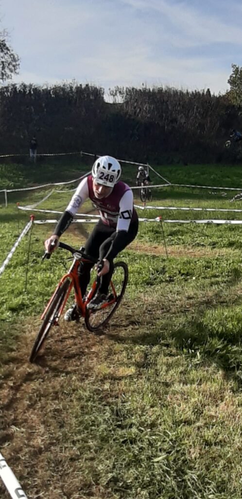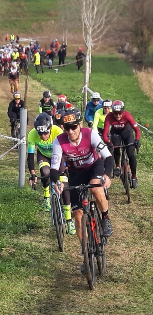 Oggi rispondiamo presente in tre, in testa a guidare le fila “capitan Giaroli” seguito dall’ormai fido scudiero Roberto Cavazzoni a cui si aggiunge al battesimo del fuoco Luca Fontanesi alla sua prima assoluta. Ore 10.00 apertura delle danze, allo sparo eccoci pronti a dar battaglia, subito un breve tratto in asfalto come da regolamento per immeterci sulla prima erta di giornata breve ma velenosa che ci porta sulla parte alta del tracciato , qualche curva poi di nuovo in picchiata con una discesa in contropendenza per tornare sulla parte bassa dove si disputa quasi tutta la gara, un breve rettilineo ci porta in un boschetto dove usciamo per fare un rampino secco con curva a gomito in salita e di nuovo giu’ in discesa, di nuovo un bel rettilineo ed entriamo di nuovo nel bosco dove una scalinata ci riporta sulla parte alta, qui si affronta una discesina ostica che ci riporta su una salitella sempre in contropendenza da equilibrismo, un bel tratto dritto lungo spezzato da una serpentina e di nuovo giu’ nella parte bassa ma per poco perchè si affronta il classico salitone in asfalto da fare a full gas e di nuovo in picchiata nel pratone imbottito di curve e controcurve ( forse un po’ troppe e un po’ strette per alcuni ), un po’ di whoops , un’asse da saltare un ponticello e si torna di nuovo in alto con una salitella spezzagambe, poche curve poi giu’ di nuovo in picchiata nel pratone preludio della salita iniziale dove è posizionato l’arrivo … il tutto per cinque giri da lingua fuori, bellissimo… vero ciclocross bello tosto.