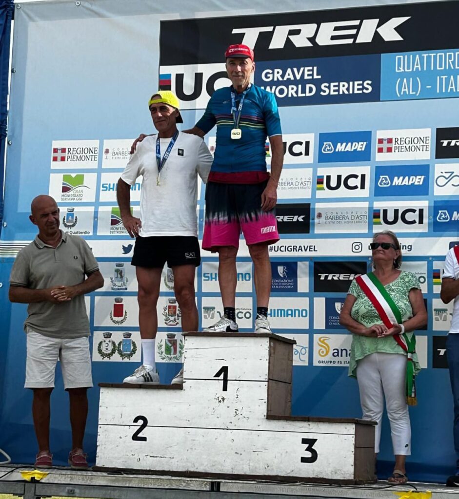 Come da regolamento UCI due i percorsi messi in campo dal CO qui a Quattordio, il Lungo ( 152 k x 1770 D+ ) riservato alle categorie Elite, M1, M2, M3 e M4 ed il Medio ( 76 k x 610 D+) per M5 – M6 – M7 – M8 – M9. Circa 500 gli iscritti e npmi alisonanti ma i classificati all’arrivo saranno molti meno (166 sul Lungo e 104 sul Medio) causa la selezione fatta dai duri strappi delle colline del Monferrato a cui si aggiungeranno guai meccanici, forature ed il caldo che in questo periodo la fà da padrone hanno contribuito a farlo diventare un Gravel bello tosto, comunque bello il percorso ed il passaggio tra vigne e noccioli impagabile . I primi a tagliare il traguardo sono con in testa l’M5 Ceci Filippo (2h21m50s) quelli del Medio, ma ecco pochi minuti dopo in 8^ posizione assoluta (2h30m12s) passare sotto lo striscione d’arrivo e Vincitore della Cat. M7 un’immenso “SuperFusto Fornaciari” che mette dietro in 10^ piazza niente po po di meno che un certo Pascal Michel Richard (lo Svizzero Campione Mondiale Ciclocross ’86, Campione Olimpico ad Atlanta ’96, vincitore di una Liegi Bastogne Liegi e di un Giro di Lombardia), mi sà che un pensierino per il Mondiale Belga si possa onestamente fare Fausto … cheddici ? A cinque minuti da Fausto gli “hermanos” Stefano Peterlini e Davide Saetti, la 21^ piazza di Stefano (2h35m19s) ed il 9° di M6 ci dicono che il lavoro di 30 gg fatto in riviera in quel di MiMa ha fatto sicuramente bene ma anche un grazie a Davide che si è sacrificato facendogli da gregario è dovuto, Davide infatti non lo troviamo in classifica poichè essendo ultimo anno di M4 avrebbe dovuto fare il Lungo… è di rigore una domanda: Stefano visto che dovresti essere nel 25% dei qualificati di categoria x il Belgio, macchinata con Fausto ? Ma eccoci sul durissimo Lungo, dove si riconferma vincitore in 4h 37m 11s il Ceco Peter Vakoc (ex Etixx Queck Step) davanti al Norvegese Torbjorn Andre Roed (ex pro che ora si dedica al Gravel in USA) e al Danese Asbjorn Hellemose (ex Trek e ora SwattClub), a seguire due prof italiani Cibrario e Cafueri in quarta e quinta e nei dieci anche il rosso di Noale Mattia De Marchi mentre Daniel Oss è costeretto ad alzare bandiera bianca causa caduta, vince tra le Donne Alice Maria Arzuffi (Fiamme Oro) 41^ assoluta. Primo dei nostri e superprestazione per Andrea Magnani in 88^ piazza con anche il 6° di M4 (5h 40m 35s), per lui speriamo si accenda luce verde ma per ora non è nel 25% della sua per il Belgio ma la gamba c’è e si è visto… meriterebbe. Da applausi anche Vittorio Riva che la chiude per noi in 170^ posizione anche se hanno chiuso il cancello pochi minuti prima del suo arrivo, “MotoVitto” purtroppo paga le prime due ore fatte in fuorigiri per star attaccato al gruppo dei migliori e al 120 km di gara finisce definitivamente la benzina, ma ha imparato la lezione e lo vedremo sicuramente nelle prime posizioni sia alle Strade Bianche del Garda (Bardolini 22 settembre) che al Campionato Italiano Gravel Acsi (Pavia 13 ottobre).