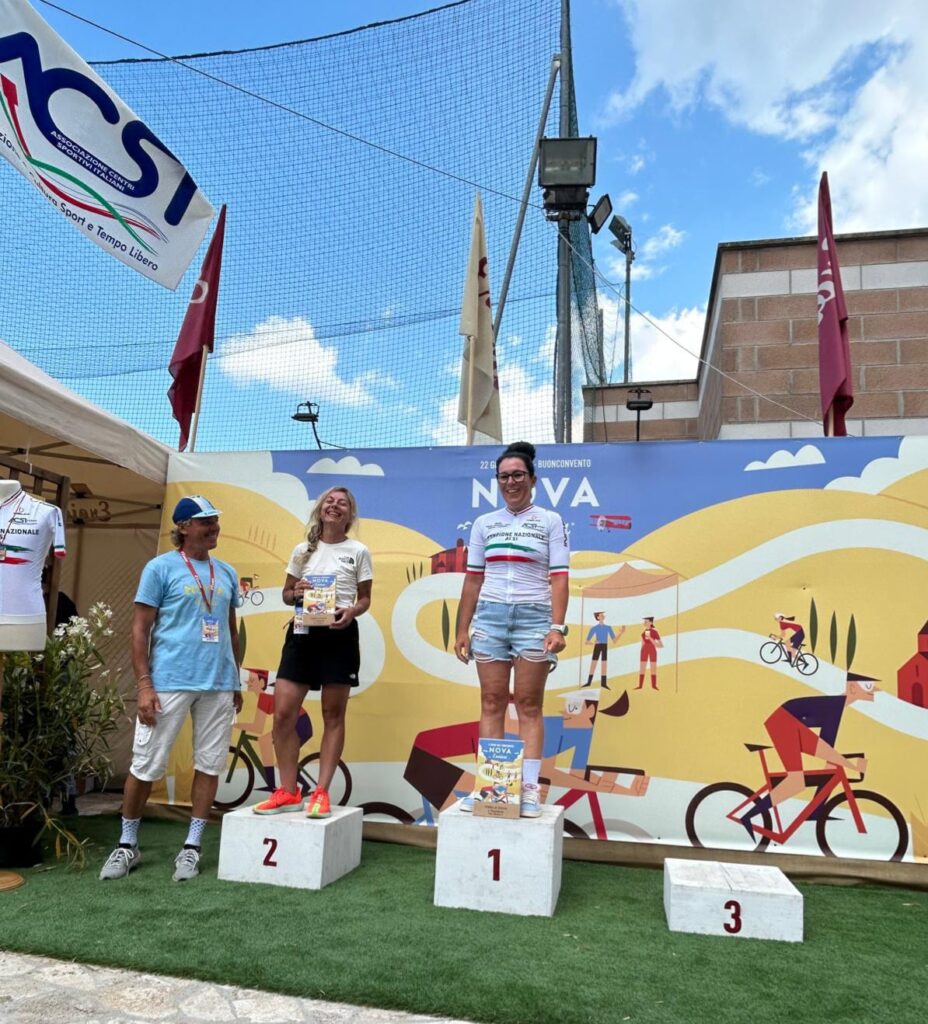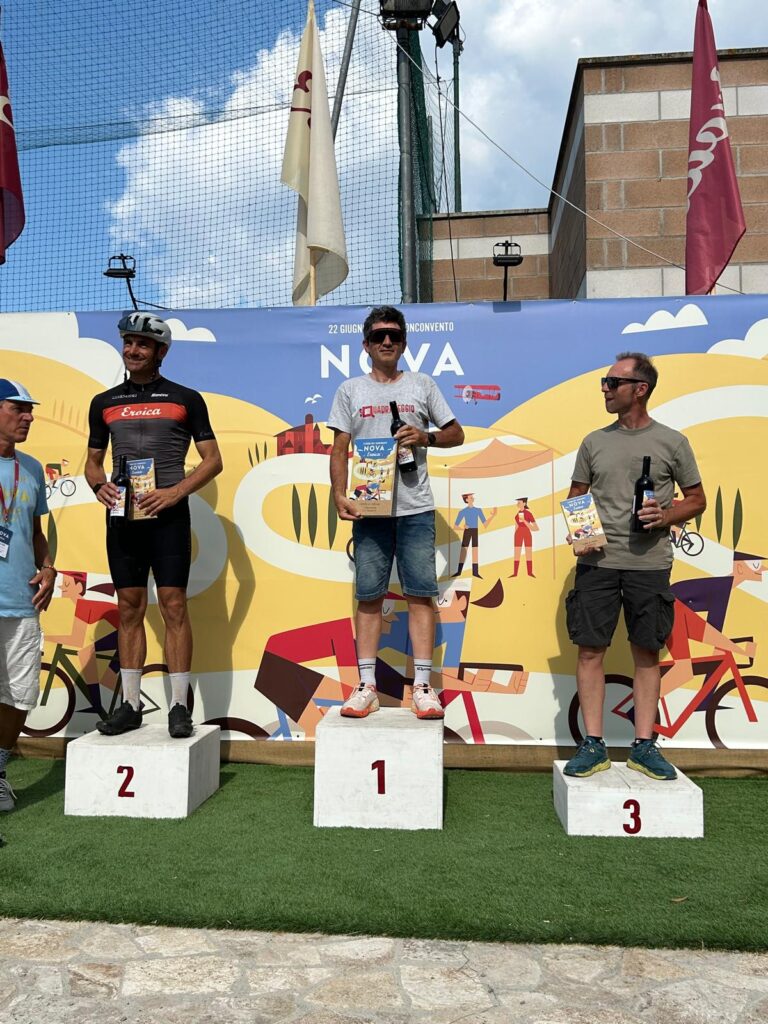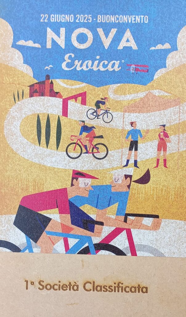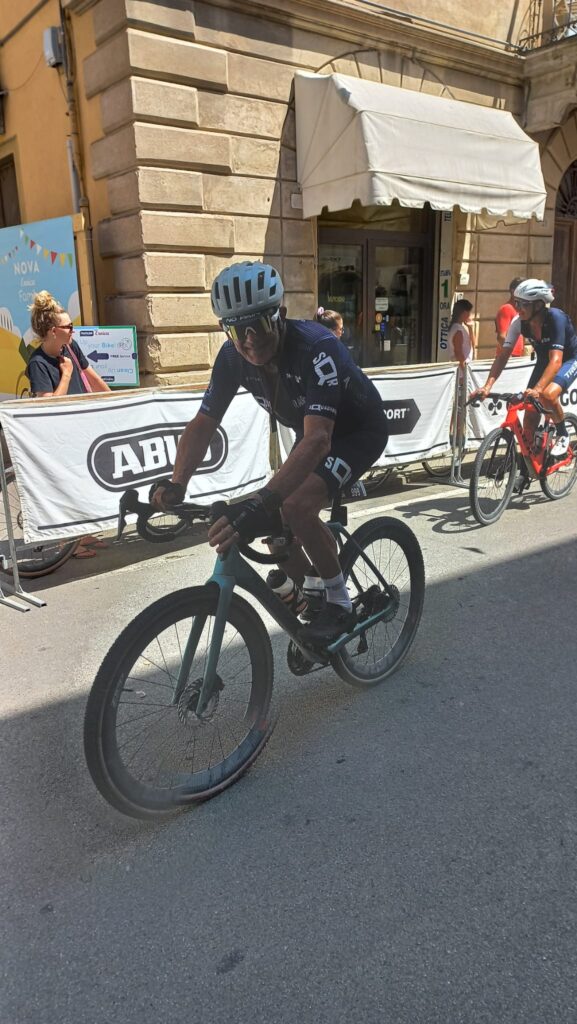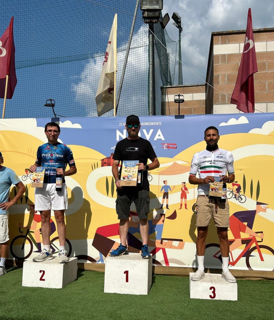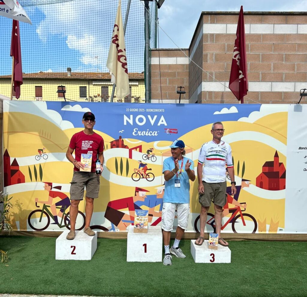 BUONCONVENTO – Ebbene si, l’abbiam fatto di nuovo … vero sì che si scendeva a Buonconvento con intenzioni bellicose ma una pioggia di risultati così non erano sicuramente nei pensieri di tutti, per non parlare poi della ciliegina finale sulla torta… e che bellissima ciliegina la Vittoria come 1^ Società Classificata a coronamento di una giornata Top tra amici. La Nova Eroica come dice il suo ideatore, Giancarlo Brocci, è un format unico nel suo genere di gara in perfetto equilibrio tra agonismo e convivialità che celebra la bellezza delle Strade Bianche, ma soprattutto il gusto della sfida ed il divertimento di pedalare in compagnia, tra l’altro e qui lo dico io perchè non esserci è anche Campionato Nazionale Acsi Gravel … what else ! Nova eroica presenta quattro percorsi ormai storici e collaudati due non competitivi da 40 e 60 km e due agonistici il Medio 90 ( 97.5 km x 1.400D+) ed il Lungo 130 (131 km x 2.000 D+), su questi ultimi due nelle annate cambiano solo le prove cronometrate che variano di anno in anno. Ed eccoci alle note salienti: la sveglia della domenica ci viene data da Giove Pluvio che a suon di tuoni e fulmini alle 5.00 precise ci da’ il benvenuto scaricando tra le 6.00 e le 7.00 una bella valanga d’acqua, poco male la partenza delle 8.00 sarà al fresco e non sotto il caldo opprimente dei giorni precedenti ma soprattutto non ci sarà il solito polverone in gara. 13 le maglie Squadrareggio ai blocchi di partenza pronti per una giornata da gustare tra sfida e divertimento sotto il motto di Brocci, un breve tratto d’asfalto per arrivare all’ inizio della prima strada bianca e dopo poco piu’ di 6 km eccoci a Serravalle con il primo tratto cronometrato Serravalle-Monteroni d’Arbia, 9 km da fare pancia a terra o quasi perchè i primi 2,5 km sono in salita ed il resto un bel vallonato da passistoni, ci si raggruppa prima di affrontare dopo pochi chilometri il secondo tratto la Asciano-Asciano, 5,4 km subito belli veloci ma con sorpresa sul finale … uno strappo durissimo di 250 mt che chi ha gambe ma soprattutto rapporti adatti riuscirà a superare in bici per gli altri il piede a terra e bici in spinta sarà d’obbligo. Al termine di questo tratto un mega ristoro ottimo per recuperare lo sforzo attende i partecipanti, non facciamo nomi ma qui si è visto qualcuno di noi sbafare una pappa al pomodoro o chi uno stufato di pecora conditi a chianti …, ma chi sarà stato ? si continua con altro tratto di strada bianca velenosissimo che da Ponte del Garbo ci porterà a scalare il famosissimo e tanto caro ad un certo “Spartacus” Cancellara Monte Sante Marie, la scalata da lingua fuori ci porta all’asfalto di Castelnuovo della Bernardenga, una decina di su e giu’ costeggiando le Crete Senesi su asfalto con rampe belle dure, poi in località Vescona di nuovo lo splendore delle strade bianche che ci riportano al ristoro di Monteroni, ci si rifocilla accompagnati da un’orchestra e si rimonta in bici per affrontare subito su asfalto tratti al 15% e di nuovo ghiaia dove anche qui le rampe replicano quella pendenza. Riprendiamo a Radi un breve tratto d’asfalto che ci porta a Murlo dove abbiamo alloggiato la sera prima, un bel discesone ci accompagna alla divisione percorsi (Km 88) , qui “capitan Giaroli” colpito in settimana da virus gastrointestinale decide che per lui è forse meglio chiuderla con il Medio mentre il resto della truppa prosegue per il Lungo. Per Marco altri 9 km di ghiaia e 500 mt di asfalto per chiuderla a Buonconvento dove scopre che nonostante la gamba vuota per il virus nelle prime due cronometrate non e proprio andato poi così male finendo in 2^ posizione di M8 (30° assoluto su 534 classificati) ma vede sfumare la maglia tricolore qui vinta sul lungo due anni fa per un misero minuto, perso sicuramente sullo strappo durissimo che colpa di rapporti adatti del suo mezzo sì al ciclocross ma non al gravel deve fare a piedi (alla fine del primo tratto il miglior crono era dalla sua)… ma và benissimo dopo le vicissitudini di questo 2025 è come una vittoria. Per i nostri sul Lungo il sole si ripresenta e le nuvole che ci hanno tenuto al fresco se ne vanno, il caldo si aggiunge alla durezza della prova, dopo il bivio dei percorsi una bella quindicina di km di ghiaia li porta ad affrontare il terzo tratto cronometrato Montalcino-Montalcino (4,6 km) che unisce due bei tratti in salita a tratti in costa vallonati, all’uscita il ristoro di Torrenieri buono per ricaricare energie e liquidi, poi pochi chilometri d’asfalto per attaccare il quarto ed ultimo tratto crono San Giovanni d’Asso – Pieve a Salti (7,5 Km) con inizio in salita ed il resto piu’ semplice… è fatta, una bella discesa su asfalto e anche per loro c’è l’arrivo di Buonconvento tra gli applausi. Doccia per tutti , pasta-party ed ecco esposti anche i risultati del Lungo (217 classificati) e che risultati …