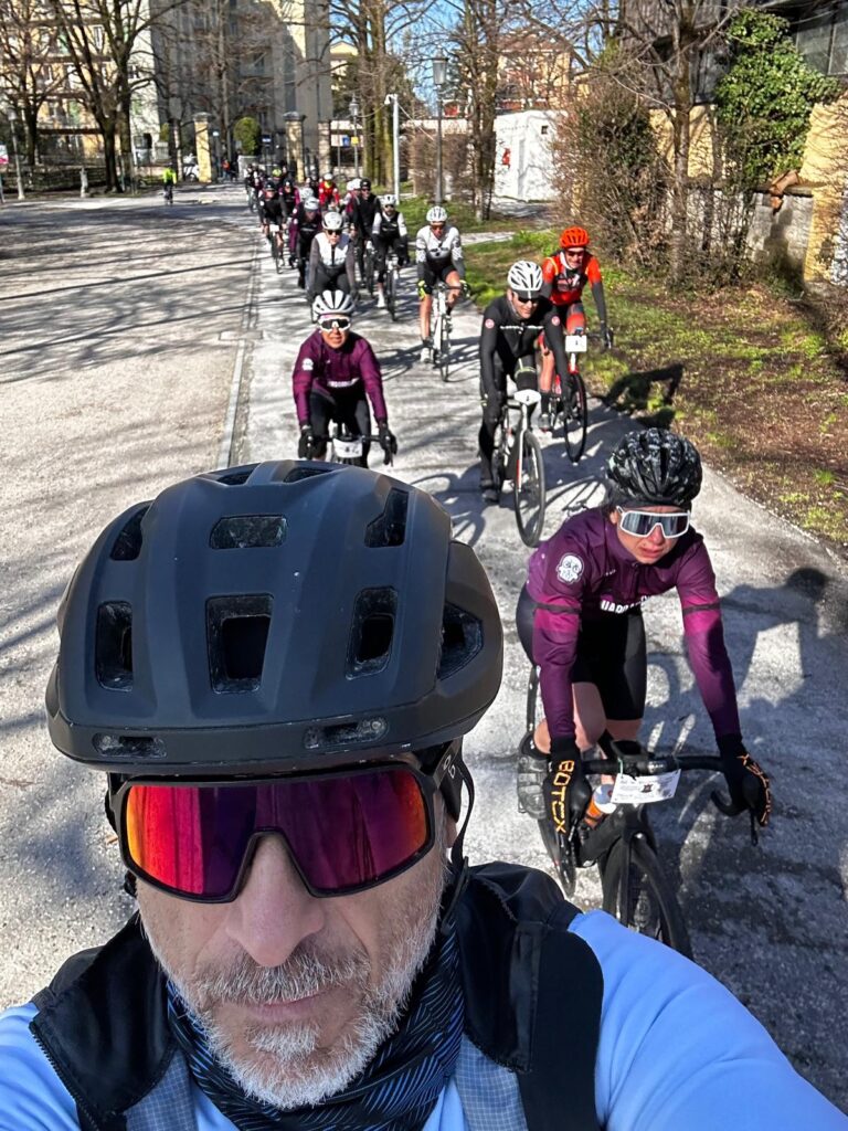 Si, proprio un bel vento ci ha accompagnato in questo bellissimo giro attraverso le valli Parmensi. Capitanati dal mitico Stefano detto Veleno che ci ha accompagnato lungo il percorso in gruppo fino al primo bivio dei 130 km dove alcuni dei nostri hanno preferito svoltare, il resto prosegue fino alla volta dei 175 kilometri! ebbene si abbiamo fatto anche una piccola escursione su una cima tempestosa per ammirare un paesaggio splendido mentre le nostre gambe tremavano! (ndr: ci sbagliati nel vedere un cartello…). Bellissimi e buonissimi i ristori, con prelibatezze per le nostre panze…Gruppo compatto e veloce fino alla fine del percorso dove ci aspettavano tortelli e prosciutto! Grandissime Vince e Carlotta che hanno tirato il gruppone anche in salita! super top! un grandissimo grazie a tutti i partecipanti che si portano a casa un punto da aggiungere alla lista….