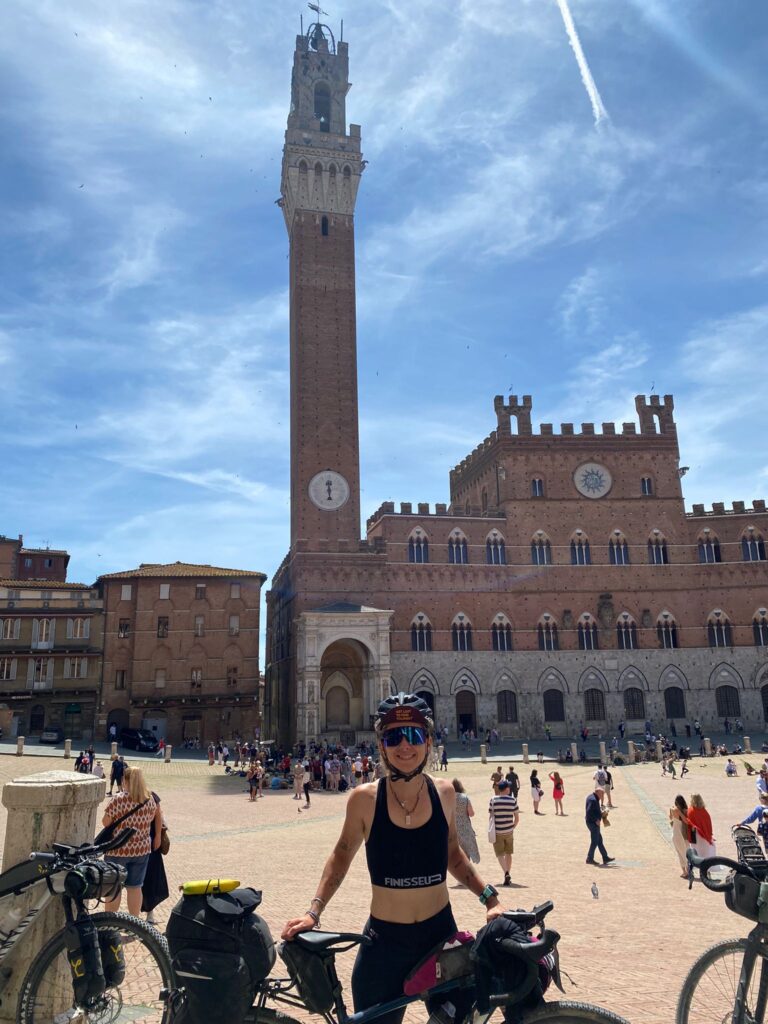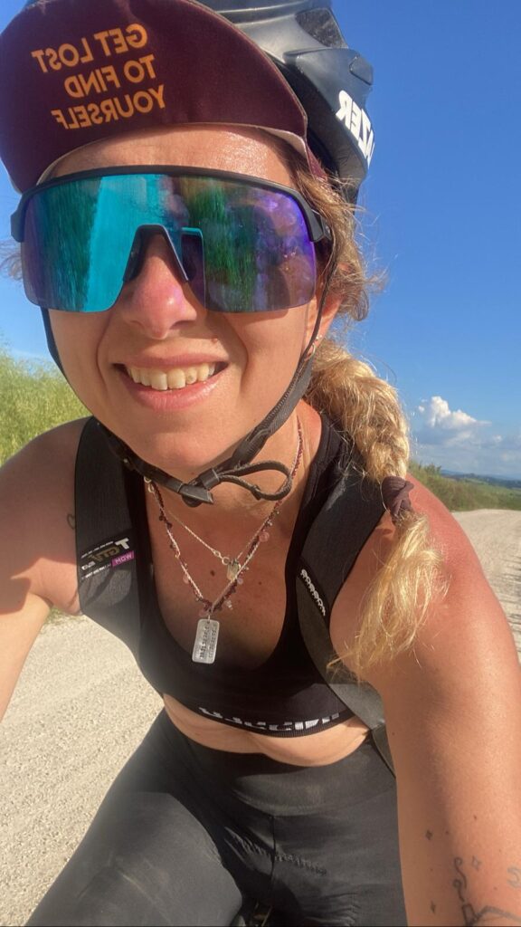 Carlotta e il “TuscanyTrail”, sì ma cos’è il Tuscany ? è la piu’ grande manifestazione di bikepacking al mondo che si svolge ogni anno in Toscana, è un’avventura di 475 km con un dislivello di quasi 7.000 metri, non è una gara ma una sfida con te stesso che fa’ provare emozioni che il partecipante porterà dentro una vita. Quest’anno è una edizione Reverse con partenza e arrivo a Catagneto Carducci toccando Follonica, Montepulciano, Siena, Colle Val d’Elsa, Volterra, Rosignano Marittimo e Cecina pedalando sulle famose Strade Bianche, in mezzo ai vigneti, dentro fitte foreste, attraverso centri storici millenari … una viaggio che è sorpresa dietro ogni curva. Riporto le parole di Carlotta che è rimasta estasiata di questa avventura : TuscanyTrail è una botta di endorfine, di adrenalina allo stato puro. Una traccia straordinaria, che ha reso possibile, costeggiare il mare, sognare un bagno a Cala Violina, attraversare i Colli Senesi, condividere il percorso dell’ Eroica e tratti della Via Francigena, 4 giorni di pedalate (33 ore di sella) a cui non sono mancate storiche mangiate, un su e giu’ tra colline, pinete, sterrati, percorsi off limit il tutto immersi in paesaggi stratosferici. Carlotta ha affrontato questa sua avventura assieme a due fantastiche compagne di viaggio e stà già pensano … a quando il prossimo ? Grazie Carlotta di averci fatto provare indirettamente questa tua emozionante avventura che ci racconterai al piu’ presto di persona davanti un boccale, grandissima “Totta” orgogliosi di averti tra noi