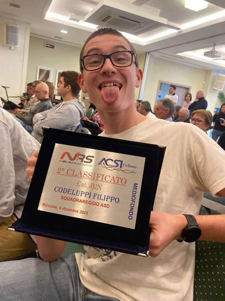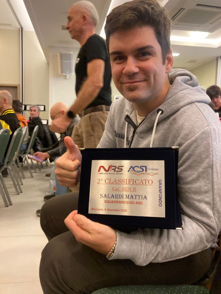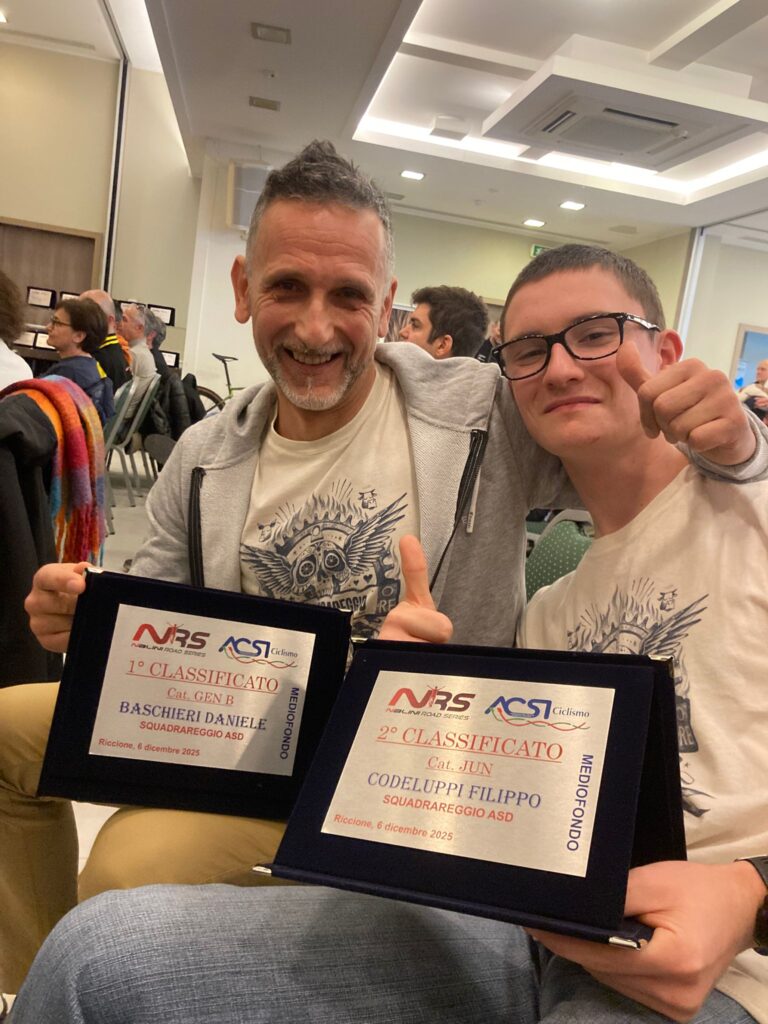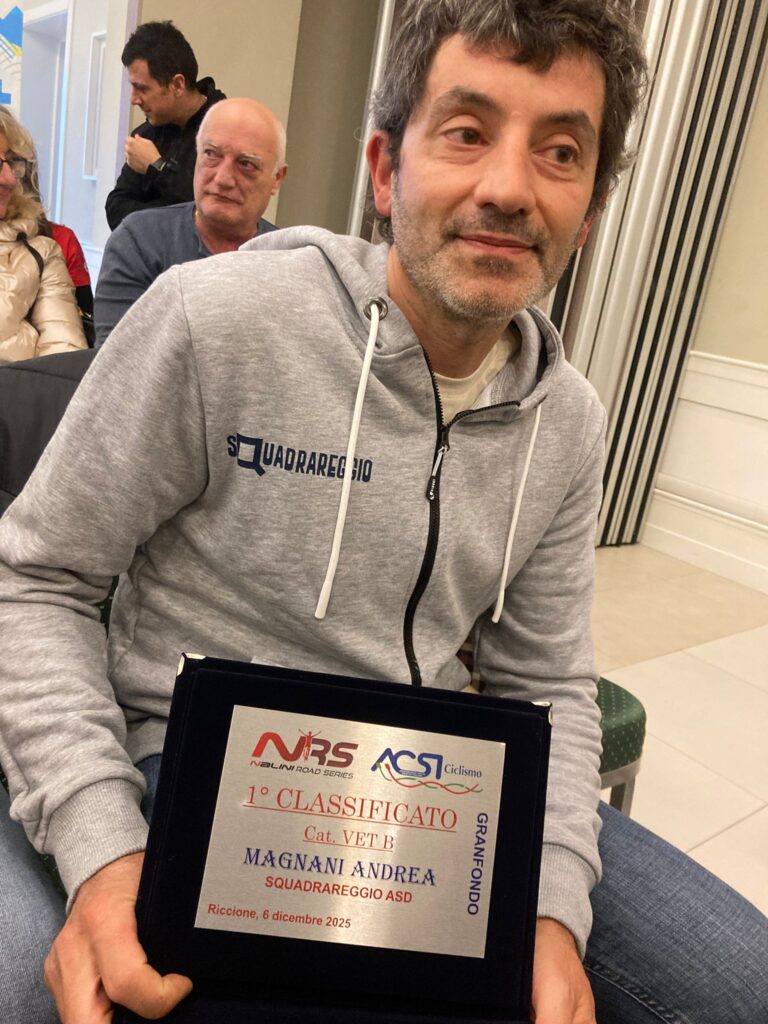 Chiusura di stagione piena di soddisfazioni per Squadrareggio e i suoi portacolori, che nella giornata di sabato 6 dicembre nel pomeriggio hanno presenziato alle premiazioni del Nalini Road Series a Riccione presso l’hotel Corallo. I nostri premiati sono ben 12 equamente divisi sulle due classifiche, a parte qualche assente giustificato i presenti ritirano i meritati premi gentilmente offerti dagli sponsor del circuito, Nalini e Liotto, l’evento è ben organizzato tra premiazioni e ospiti del mondo ciclistico, da Andrea Noè a Edita Pucinskaite dal presidente ACSI al direttore della rivista Cicloturismo, un pomeriggio dove si respira ciclismo e novità per la prossima stagione. I nostri premiati hanno monopolizzato molte delle prime posizioni delle relative categorie, nel medio Giovanardi Carlotta 1^, Iafulli Nicola 3°, Baschieri Daniele 1°, Soncini Luca 2°, Foletti Andrea 3° .