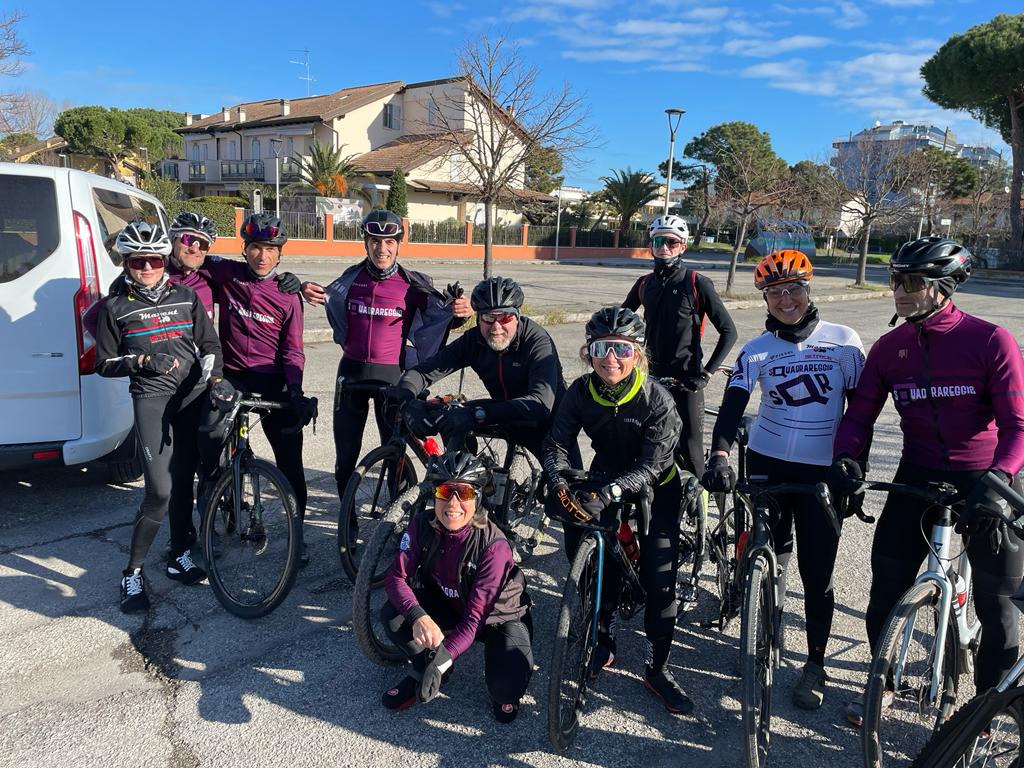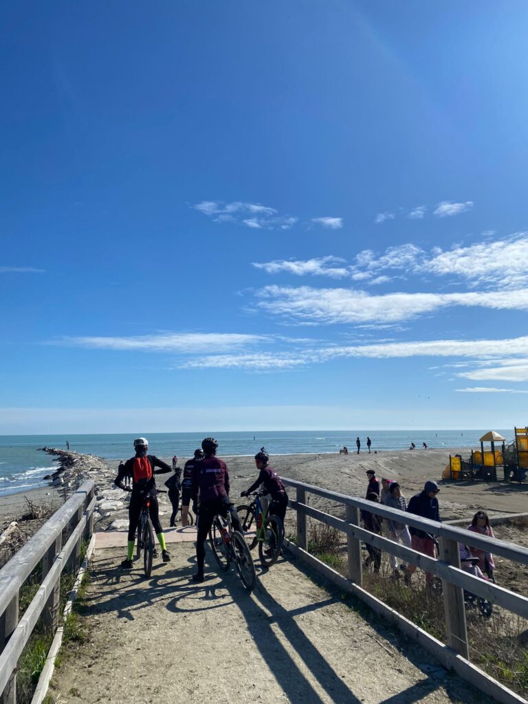 La riviera romagnola domenica mattina ha accolto i partecipanti a questa escursione aggregante capitanata da Stefano Peterlini con sole terso e temperature primaverili, d’altronde avevamo prenotato con largo anticipo una giornata così e siamo stati premiati, SQR ha potere… Partenza dalle Piscine di Cervia ore 9.30 per poi addentrarci nelle zone di interesse naturalistico come la Pineta di Milano Marittima, il Parco Primo Maggio, la Pineta di Classe, un tocco di cultura con la Basilica di Sant’Apollinare in Classe per poi toccare Ravenna ed il Lido di Dante con breve puntata in spiaggia e ritorno sempre immersi nel verde tra pini marittimi, canali ed altra vegetazione tipica del luogo, non sono poi mancati incontri con cigni, starne, folaghe, gallinelle d’acqua, aironi e gli immancabili gabbiani. Le tre orette di pedalata e settanta chilometri sono passati anche grazie ai panorami e l’ottima compagnia, in un lampo ed in men che non si dica ci siamo ritrovati con i piedi sotto al tavolo al ristorante a gustare l’ottima cucina romagnola sempre accompagnata a suon di birre. Ecco la pattuglia di fortunati che si è goduta la giornata: Stefano Peterlini ( Cicero Ciceronis ), Vincenza Fumarola, Anna De Maria, Carlotta Giovanardi, Stefania Aguzzoli, Andrea Foletti, Alberto Margini, Filippo Codeluppi, Massimiliano Pedroni, Massimo Costoli, Marco Giaroli poi Luigina Ostuni, Simone Celsa, la loro splendida piccolina ed il compagno di Carlotta che ci hanno raggiunti a pranzo … ma non solo, a pranzo è “piombato” anche Maurizio Aguzzoli che si è fatto un 180 km Bologna – Cervia – Bologna tanto per gradire, per lui una passeggiata. Giornata da 10 e lode passata assieme in ottima compagnia… tanta tanta roba, ma non finisce qui tenetevi pronti perchè ne abbiamo prenotato un’altra questa volta con bdc qui a marzo con escursione sulle colline del Garda e mangiata , STAY TUNED SQR .