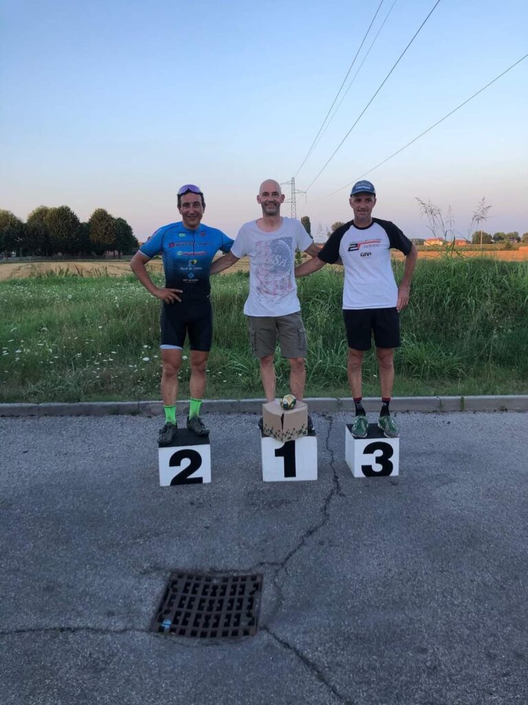 Una nota di merito è dovuta anche a Davide Saetti che si presenta in sordina l’ 11 luglio a Sant’Agostino di Ferrara al 18° GP Sulle Sponde del Reno gara Uisp riservata a mtb/cx/gravel, il nostro Davide che sicuramente sarà partito ultimo perchè qui le partenze prevedono primi ai blocchi mtb poi cx e gravel si prende il lusso di passare tutti o quasi chiudendola in 3^ posizione assoluta e 1° della cat. gravel, gamba e talento non mancano .