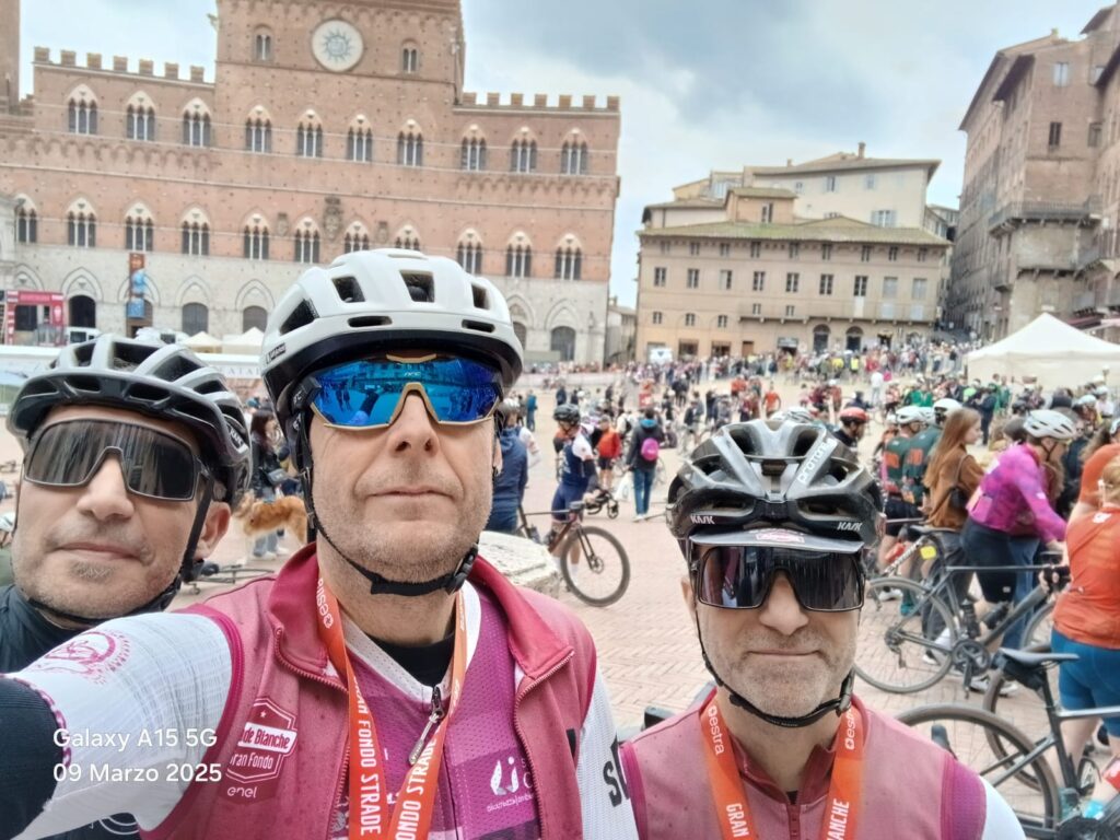 Tra i 6.500 iscritti ci sono anche 11 fortunati portacolori di SQR, sì fortunati perchè riuscire ad iscriversi a questa che è diventata una classica al pari di Maratona delle Dolomiti, Sportful e Nove Colli è diventato veramente un terno al lotto. Questa però ha un fascino tutto suo e lo dimostra il fatto che anche per i professionisti è diventata una di quelle irrinunciabili, La Classica del Nord piu’ a sud d’Europa. Strade bianche e’ una corsa unica e veramente esigente ma si rimane incantati sotto ogni punto di vista, il percorso con i sui settori di strade bianche ( 10 per la GF e 6 per la MF ) è veramente incredibile ed indimenticabile… un vero film, che dire dei paesaggi sulle colline senesi e poi l’assistenza in gara … super, il finale con lo strappo di Via Santa Caterina e l’arrivo in Piazza del Campo è una vera ciliegina sulla torta a cui tutti gli appassionati almeno una volta dovrebbero ambire … una giornata storica. La partenza dalla Fortezza Medicea è un fiume di cicloamatori che si snoda per le strade di Siena per attaccare dopo pochi chilometri il primo tratto di sterrato di Vidiritta e tra questi ci sono i nostri pronti ad affrontare una giornata da leggenda e polvere. Dopo Vidiritta per tutti si il secondo settore di Bagnaia, quello di Radi dove i percorsi si divideranno , il lungo prosegue con Piana, Serravalle, San Martino in Grania, Guistriciona, Montaperti e gli ultimi due settori uguali per tutti i percorsi con Colle Pinzuto e Le Tolfe. Ma eccoci sul Medio di 87 km e 1.350 D+ con il nostro Luca Soncini che la chiude al 471° assoluto ( 1.719 classificati ) e al 54° di categoria M6. Sul Lungo di 137 km e 2.000 D+ tutto il resto dei nostri con in primis il neo Matteo Bondioli al 528° assoluto ( 3.281 classificati ) e 107° di M2, poi Mauro Cocchi 1.390° ( 215° M2 ), “le nutrie” Juri Ariosi e Paolo Parmiggiani 1.802° e 1.804° ( 228° e 230° M6 ), poco dietro Mattia Salardi i al 1.836° ( 261° M2 ), Rodel Pagsinohin è 2.325° ( 273° M2 ), e per finire in rapida successione al 3.108, 3.019 e 3.020 Carlotta Giovanardi ( 49^ WC ), Roberto Immovilli ( 475° M5 ) e Stefano Spagni ( 251° M7 ). Aggiungiamo anche Roberto Montermini sul lungo ma non avendo riscontro cronometrico non sappiamo se non abbia istallato il chip o a causa di anomalia non abbia funzionato quindi rimane senza riscontro ma se la sarà goduta anche lui. Complimenti ai nostri 11 leggendari, questa è sicuramente un’impresa sportiva che rimarrà indelebile ricordo nei vostri cuori e a tutti voi va il nostro applauso… bravi bravi bravi. Squadrareggio sempre al top !
