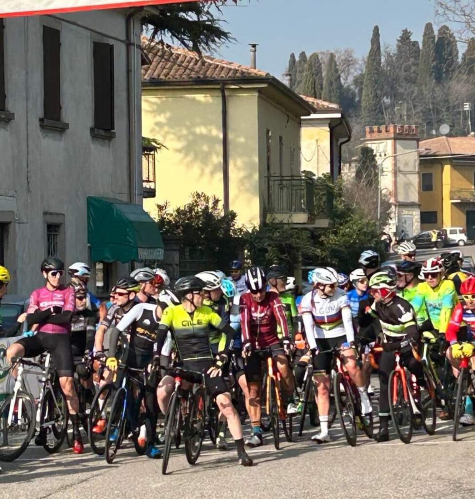 L’ AutoBrennero era chiusa per nebbia ma il nostro poker composto da “capitan Giaroli”, “Fusto” Fornaciari, “RobertOne” Montermini ed il “Buzz” Buzzelli non si è fatto spaventare ed ha raggiunto le ridenti e soleggiate colline del Garda facendo percorsi alternativi. Il counter dei pre-iscritti venerdì era arrivato a 425 ma causa nebbia poi al sabato i partenti sono stati circa 350 , numero comunque importante, era da tempo che non si vedeva una così forte adesione neanche fosse un Campionato Italiano. I nostri son tutti nella prima partenza che vede 114 partenti cosi divisi: GentlemanA 43 partenti e GentlemanB 71 partenti schierati per il pronti via alle 13.45, a seguire poi due minuti dopo l’altro gruppo di 58 con SGA (40 partenti) e SGB (18 partenti), il percorso è il classico collinare di Colà di 8.5 km da ripetere 7 volte con il famoso budello in salita a precedere l’arrivo per un totale di c/a 60 km. La partenza a fiamma già al secondo giro crea selezione e a lasciarci le penne è il buon Montermini che paga una preparazione ancora agli albori. Meglio si comporta Carlo Buzzelli alla sua gara d’esordio negli amatori strada, il “Buzz” vince la sfida con se stesso, si è infatti imposto di non farsi doppiare e anche se si fa gli ultimi tre giri da solo riesce nell’intento chiudendola 94° assoluto e 58° di GentlemanB ( vincono negli A Costa/Iperlando e Cerdelli/Stocchetti nei B ), grande Carletto. Nei Super Giaroli e Fornaciari sono costantemente nelle prime posizioni del gruppo per non rischiare di rimaner tagliati fuori da possibili fughe, fuga a due che invece riesce sullo strappo al termine del quarto giro … nessuno ci avrebbe creduto visto che la media finale è stata di 40 all’ora ma i due SuperA hanno fatto veramente un gran numero mettendo sotto scacco tutto il gruppo. Fausto e Marco la chiudono comunque bene al 14° e 18° posto assoluto con Fausto 11° nei SuperA e Marco 6° nei SuperB ( vincono neli SuperA Benedetti/Iperlando e nei SuperB Manenti/Team Bianchi) . E con oggi il ghiaccio è rotto, anche grazie ai 16/17° gradi di Colà, quindi avanti SQR la stagione 2024 è cominciata e sabato prossimo c’è Bardolino per chiudere questa Due Giorni … dai c’andom … gas a martello e buon anno di competizioni a tutti.
