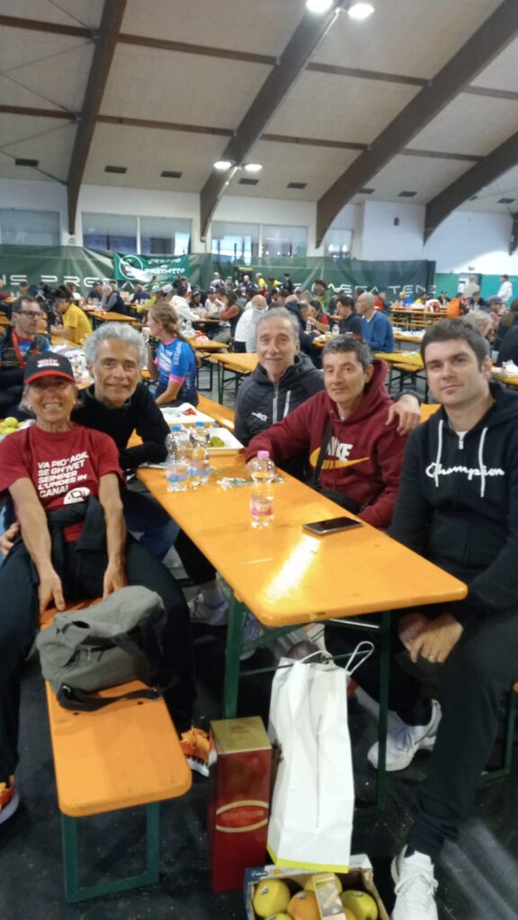 Quando il pane quotidiano sono salite lunghe e dure la nostra Vincenza Fumarola va a nozze e qui a Predazzo l’abbuffata è di primordine infatti sul Lungo in soli 135 km si arriva a quasi 4.000 mt di dislivello scalando nell’ordine uno scaldagambe come il Costalunga ( 11 km al 4,5% ), il tremendo Passo Pampeago ( 14 km al 7,6% ), il San Pellegrino ( 12 km al 6,2% ) ed infine l’osso di giornata il Valles ( 7 km all’ 8,6% ). Mattina “freschina” in partenza per non dire gelida con una manciata di gradi sopra lo zero, qualcuno si sarà chiesto se effettivamente siamo a fine maggio o ancora a febbraio, lo scaldagambe Costalunga non lo è per niente ed i nostri hanno le gambe dure come il legno per il freddo, qualcuno ha anche problemi di stomaco … la giornata si prevede piu’ dura del solito. Ma veniamo alla cronaca di gara con il Medio di 80 km e 2450 D+ ( 653 classificati ), qui i passi da scalare sono “solo” i primi due ma il secondo da Nova Ponente con le dure rampe sul Lavaze’ e il Pampeago subito dopo basta e avanzano, qui un buon Daniele Baschieri ben si difende e la chiude in 3h13’55” al 195° posto assoluto e 36° di M5/M6 ( non capiamo il perchè il C.O. abbia accorpato le categorie cosa che ci complica sapere quale sia la posizione effettiva dei nostri … ma tant’è ), segue in 383^ e 82° di M5/M6 Luca Soncini che purtroppo ha sofferto di problemi respiratori e la chiudiamo con uno che solitamente è sui Lunghi ma questa per le sue caratteristiche sarebbe stata troppo ma Mattia Salardi è comunque da elogio in 473^ e 100° di M1/M2. Passiamo al Lungo ( 536 classificati ) dove i nostri superati i primi due passi dove hanno penato sembrano riprendersi … Fausto Fornaciari, Davide Bertolini e Andrea Magnani sul San Pellegrino ritrovano la gamba ma ormai recuperare posizioni è dura ed arrivano a poca distanza uno dall’altro, il primo è “Fusto” al 173° in 5h18’27” ( 4° di M7/M8 ma ufficialmente 2° di M8 ) , un minuto e mezzo dopo al 187° c’è Davide 69° M1/M2 e un minuto dopo ancora ecco Andrea Magnani in 188^ e 56° M3/M4, a scaldare i cuori di giornata e scacciare il freddo patito sui passi e sule rispettive discese ci pensa la nostra regina al secolo Vincenza Fumarola, la “Vince” rispolvera mantello e scettro e qui con il 391° assoluto conquista la vittoria in cat. DonneC … wonderwoman !